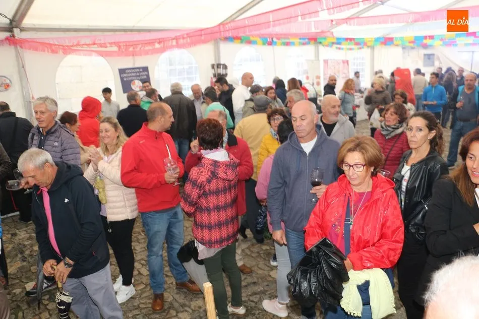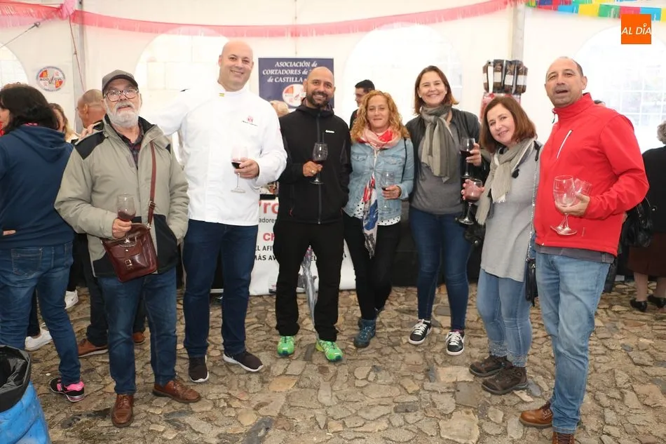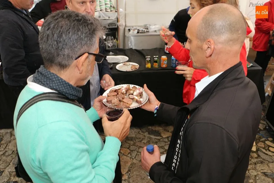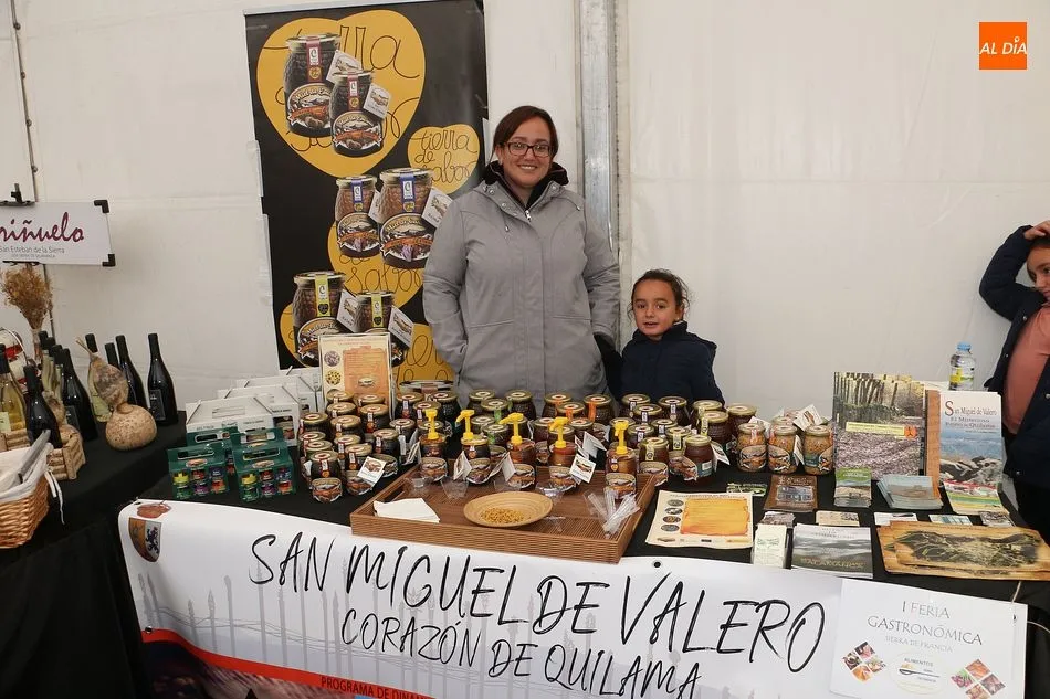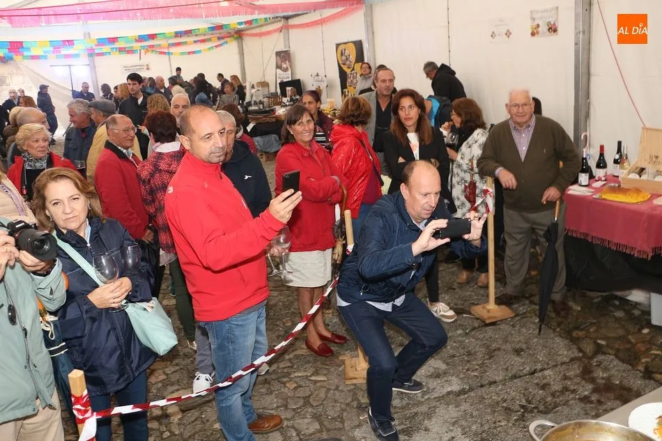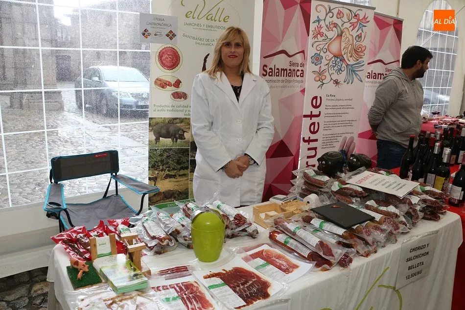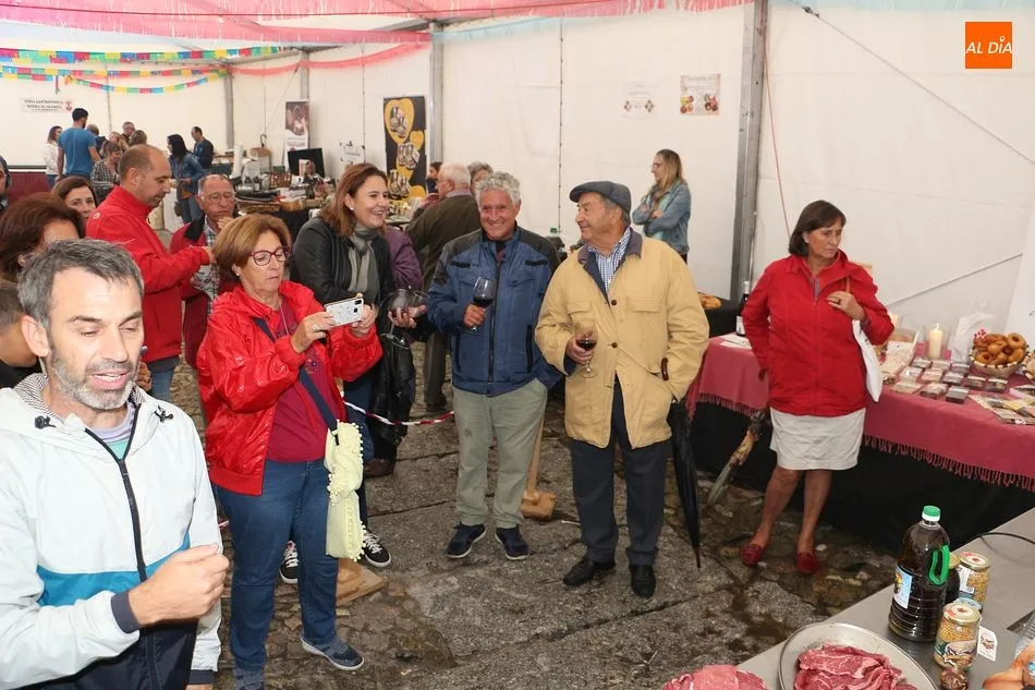En la mañana de hoy la lluvia ha hecho presencia en el lugar, pero sin espantar a los visitantes, que han estado presentes en buen número. Entre los stands no han faltado las muestras de productos de la Sierra de Francia, como vino de la Denominación de Origen Sierra de Salamanca, queso, embutido, jamón ibérico, miel, dulces típicos y carne en diferentes variedades.