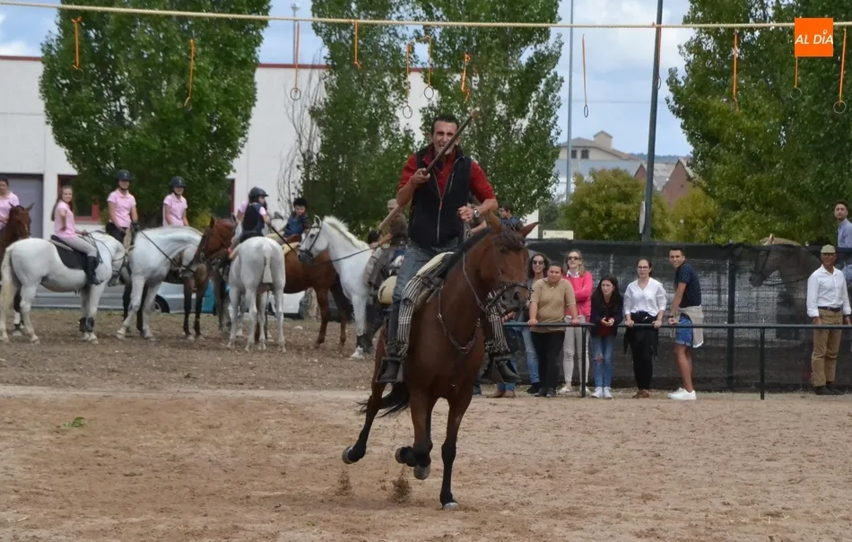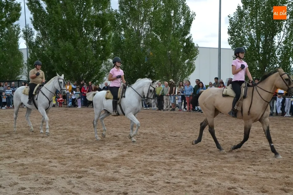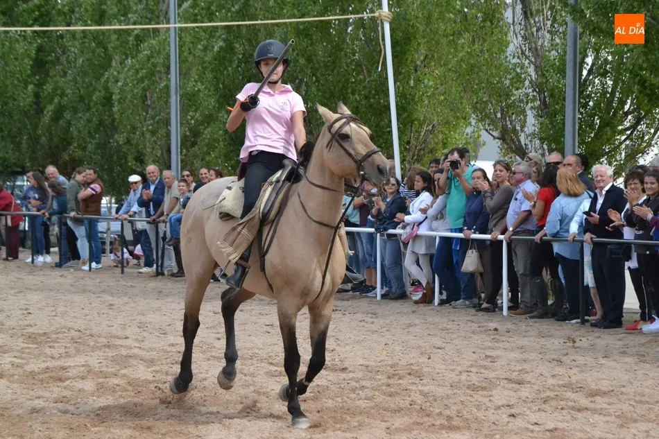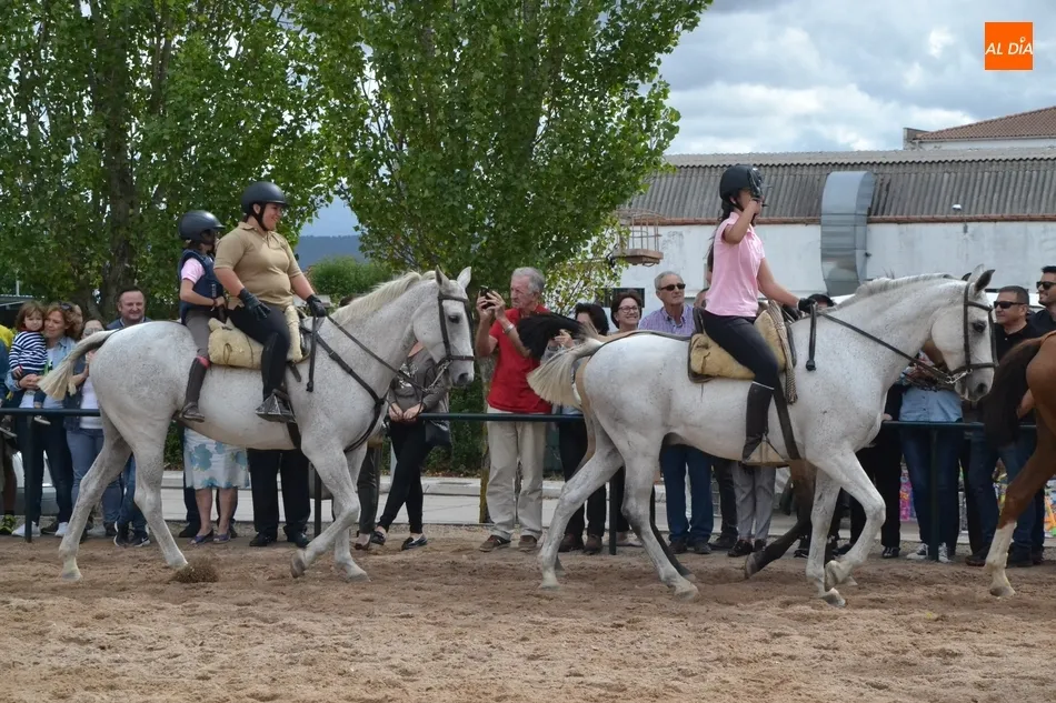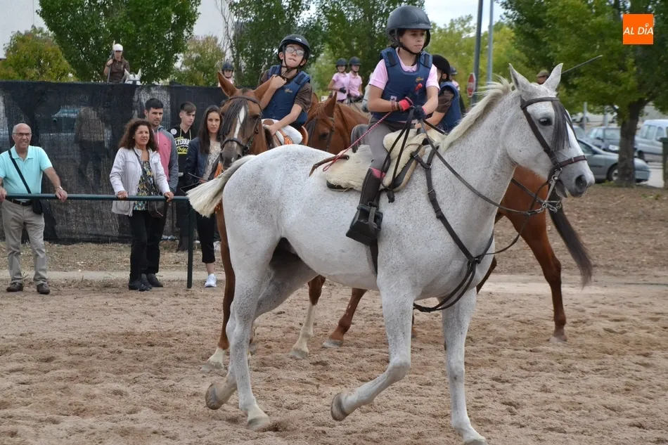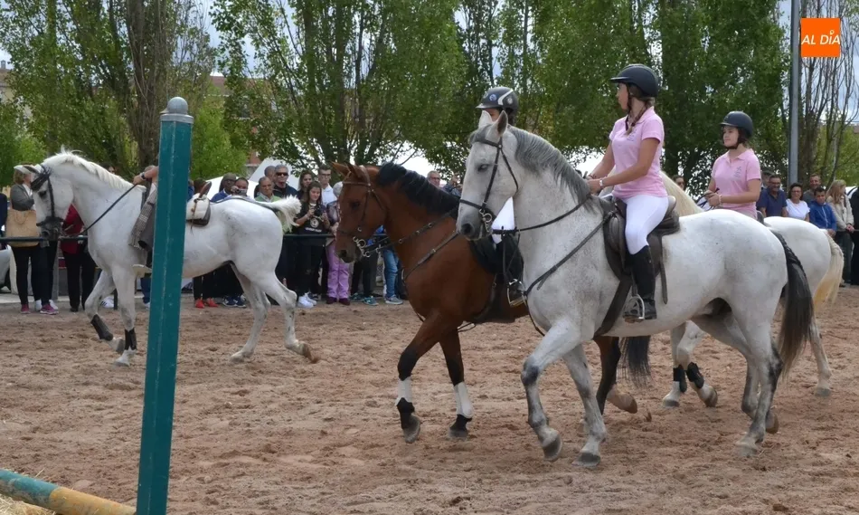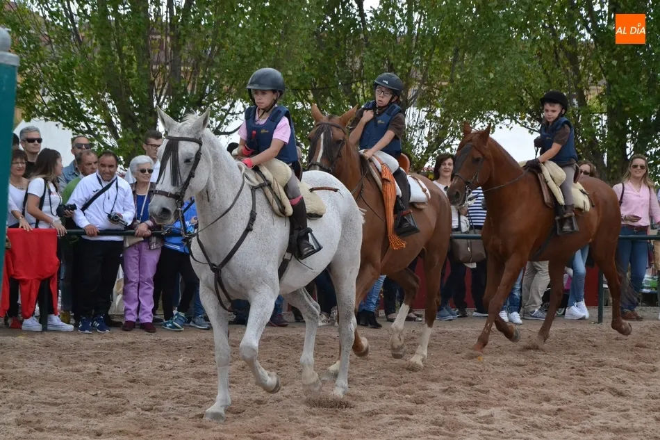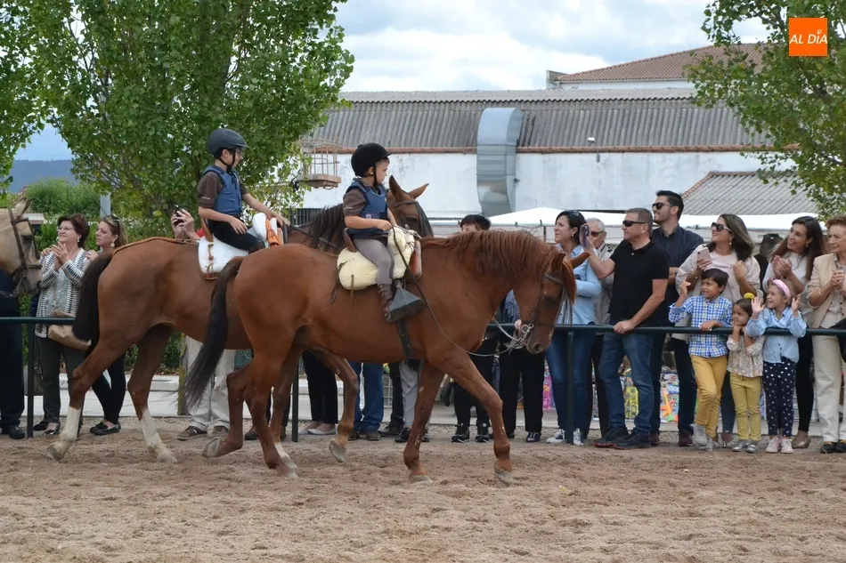 Mientras, en el exterior, la primera cita de la mañana fue una exhibición en la pista de competición de los jinetes y amazonas más jóvenes del Centro Ecuestre Casasola (un total de 11), que fueron saliendo a la pista en dúos o tríos para mostrar sus habilidades saltando, haciendo giros con la garrocha, o simplemente trotando con sus caballos, todo ello bajo la dirección desde la propia pista del máximo responsable del Centro, Juan Luis Montero ?Perita?.