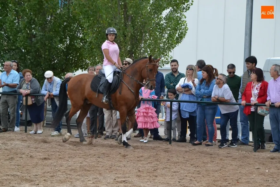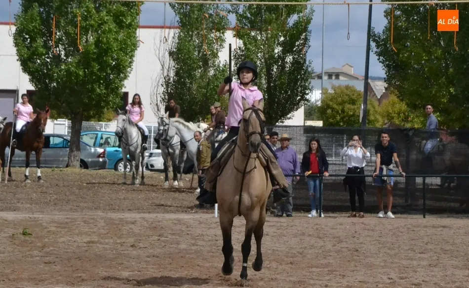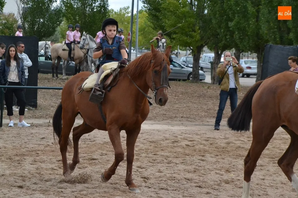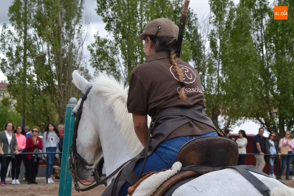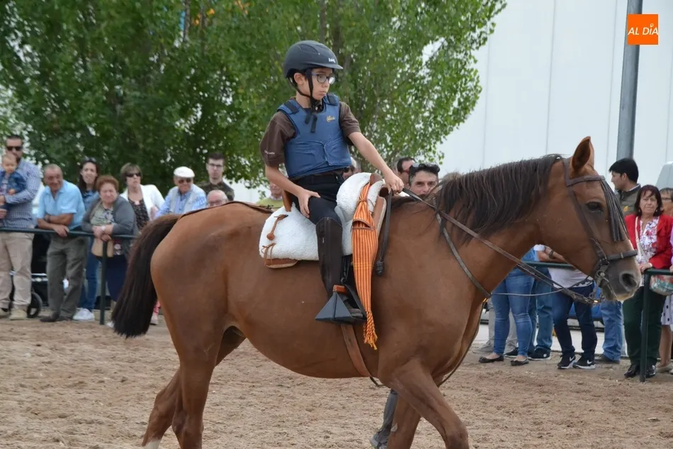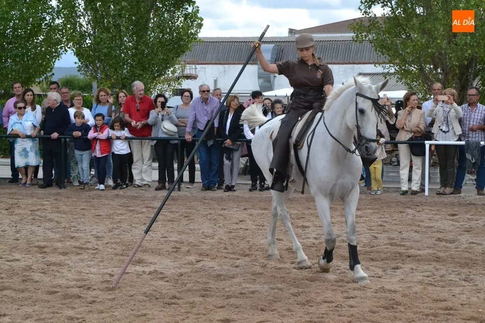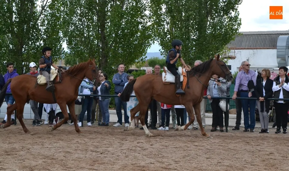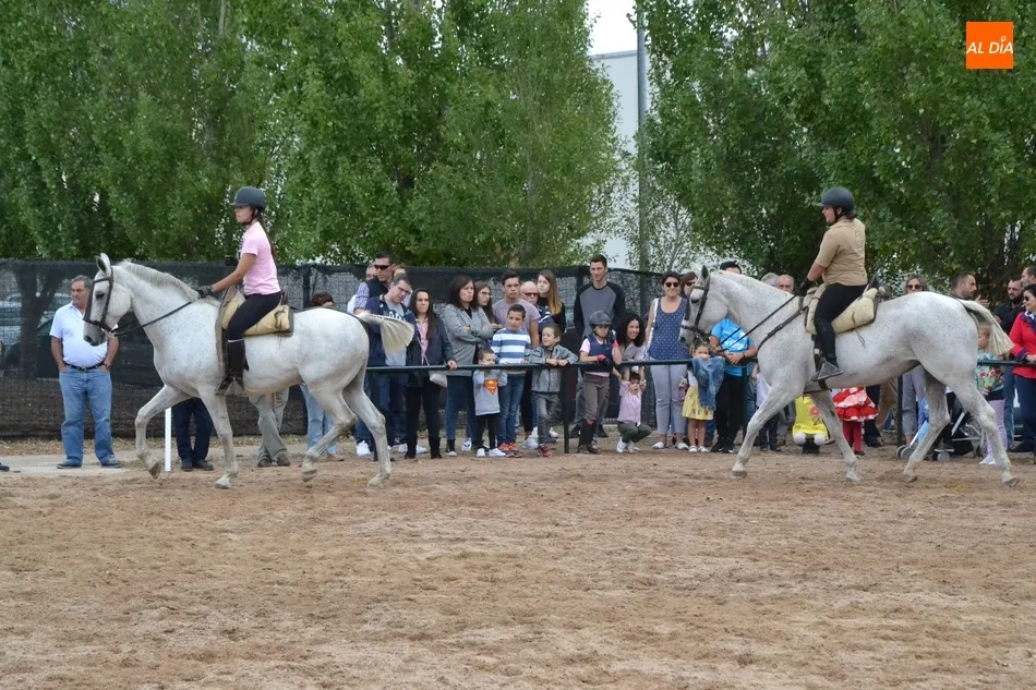 Mientras, en el exterior, la primera cita de la mañana fue una exhibición en la pista de competición de los jinetes y amazonas más jóvenes del Centro Ecuestre Casasola (un total de 11), que fueron saliendo a la pista en dúos o tríos para mostrar sus habilidades saltando, haciendo giros con la garrocha, o simplemente trotando con sus caballos, todo ello bajo la dirección desde la propia pista del máximo responsable del Centro, Juan Luis Montero ?Perita?.