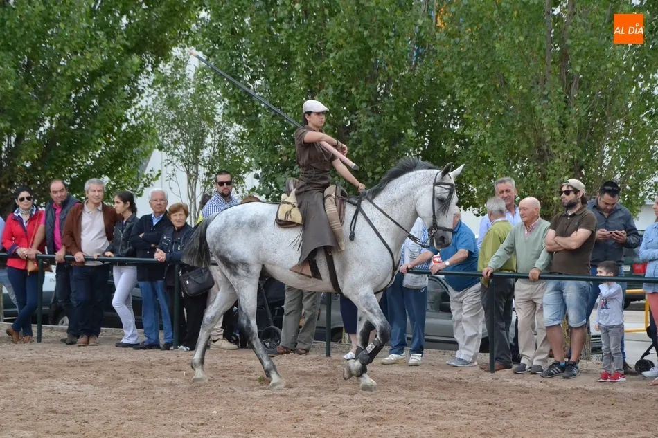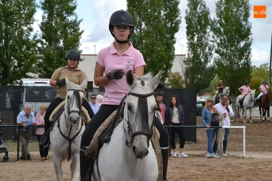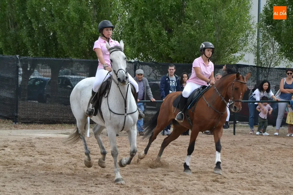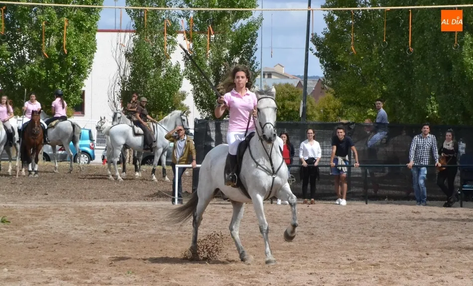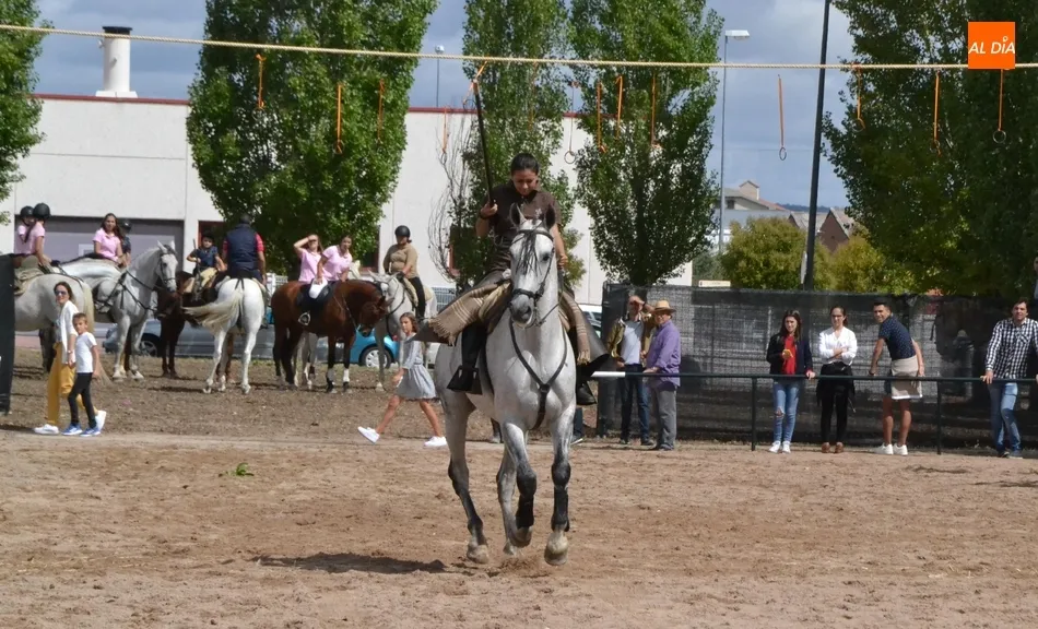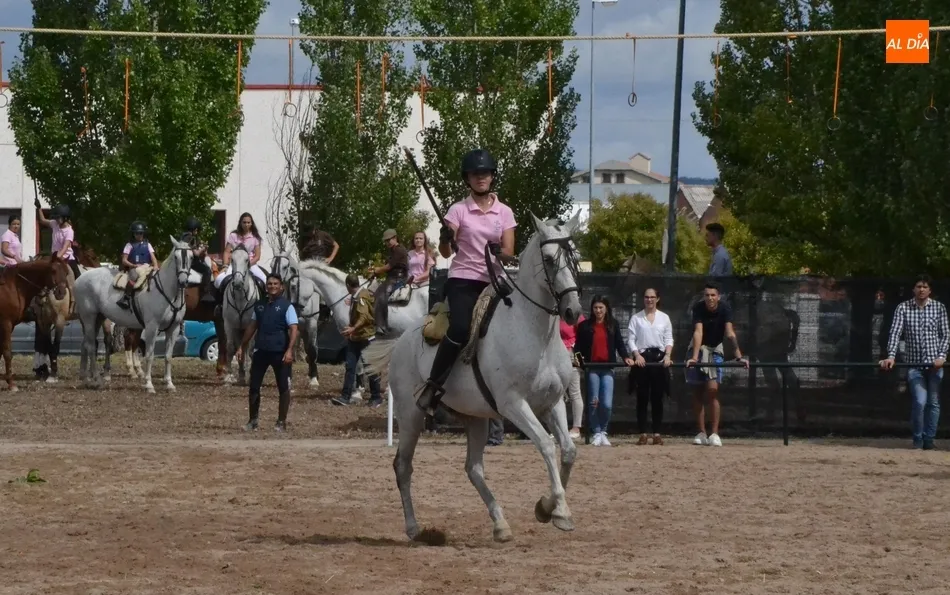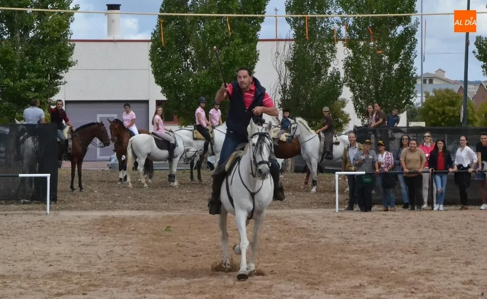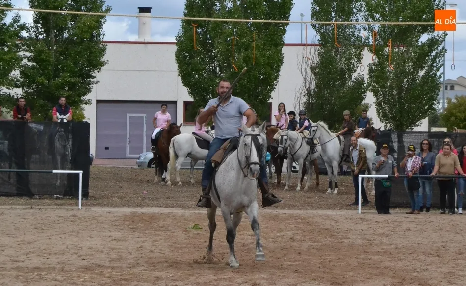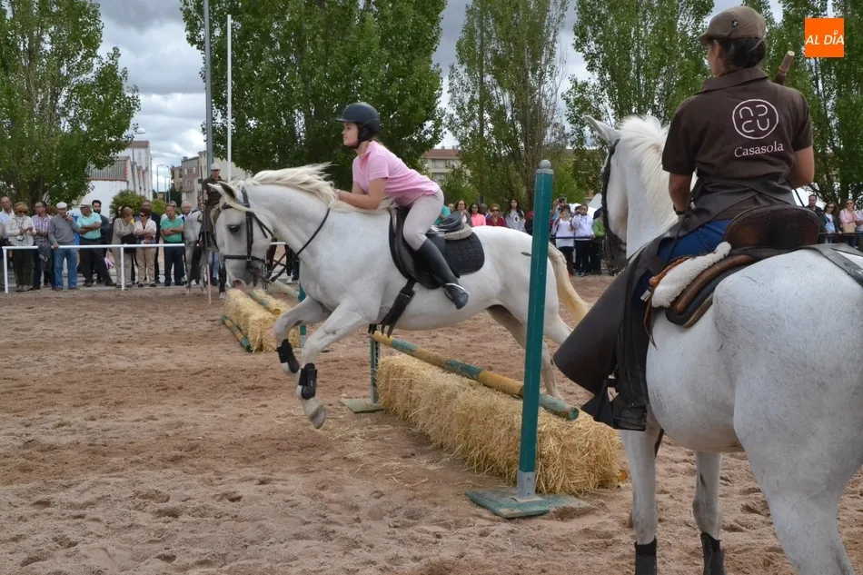 Mientras, en el exterior, la primera cita de la mañana fue una exhibición en la pista de competición de los jinetes y amazonas más jóvenes del Centro Ecuestre Casasola (un total de 11), que fueron saliendo a la pista en dúos o tríos para mostrar sus habilidades saltando, haciendo giros con la garrocha, o simplemente trotando con sus caballos, todo ello bajo la dirección desde la propia pista del máximo responsable del Centro, Juan Luis Montero ?Perita?.