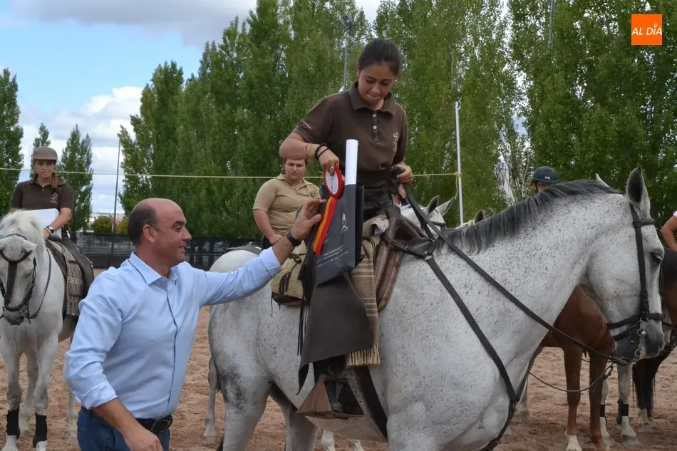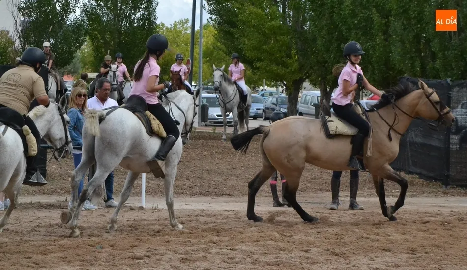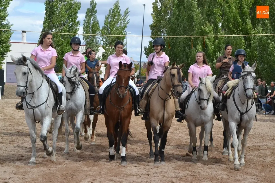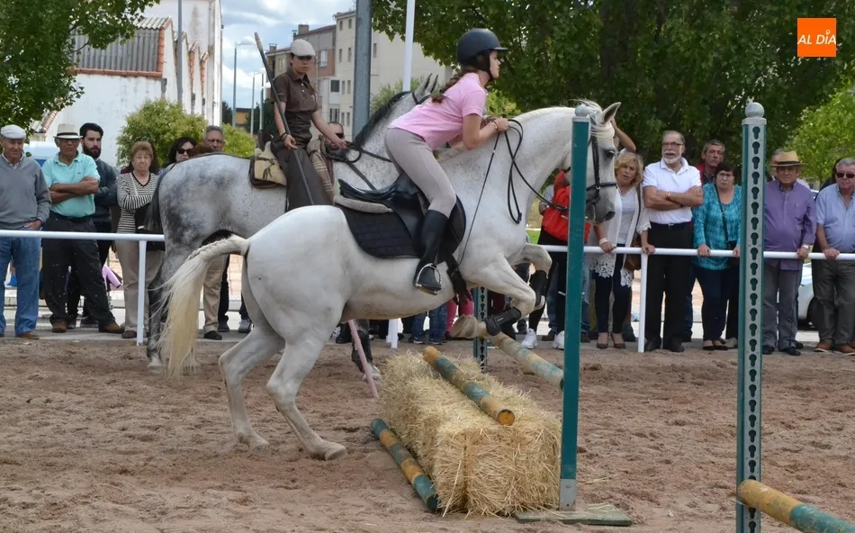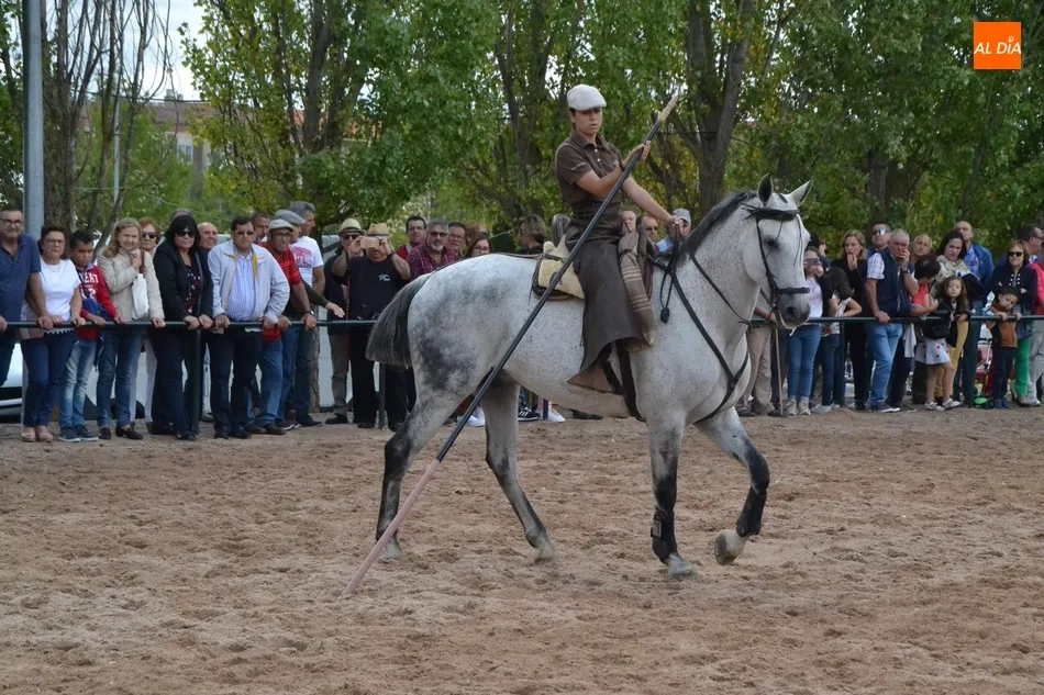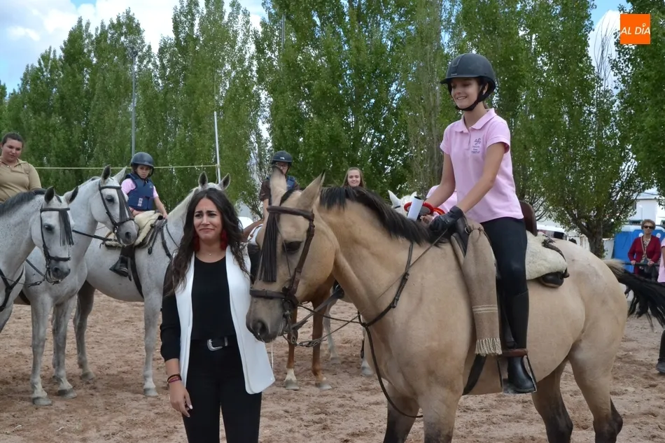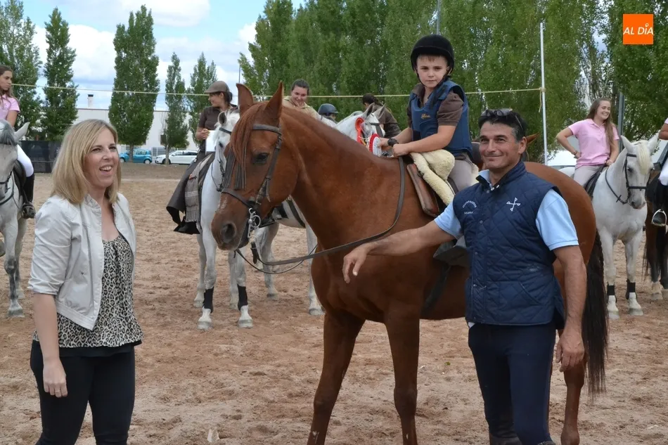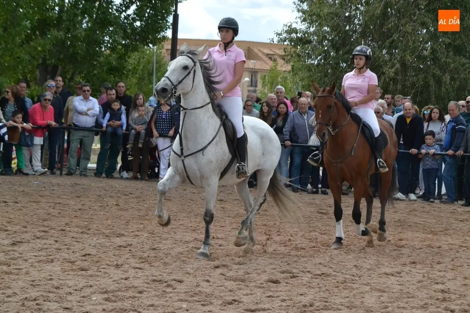 Mientras, en el exterior, la primera cita de la mañana fue una exhibición en la pista de competición de los jinetes y amazonas más jóvenes del Centro Ecuestre Casasola (un total de 11), que fueron saliendo a la pista en dúos o tríos para mostrar sus habilidades saltando, haciendo giros con la garrocha, o simplemente trotando con sus caballos, todo ello bajo la dirección desde la propia pista del máximo responsable del Centro, Juan Luis Montero ?Perita?.