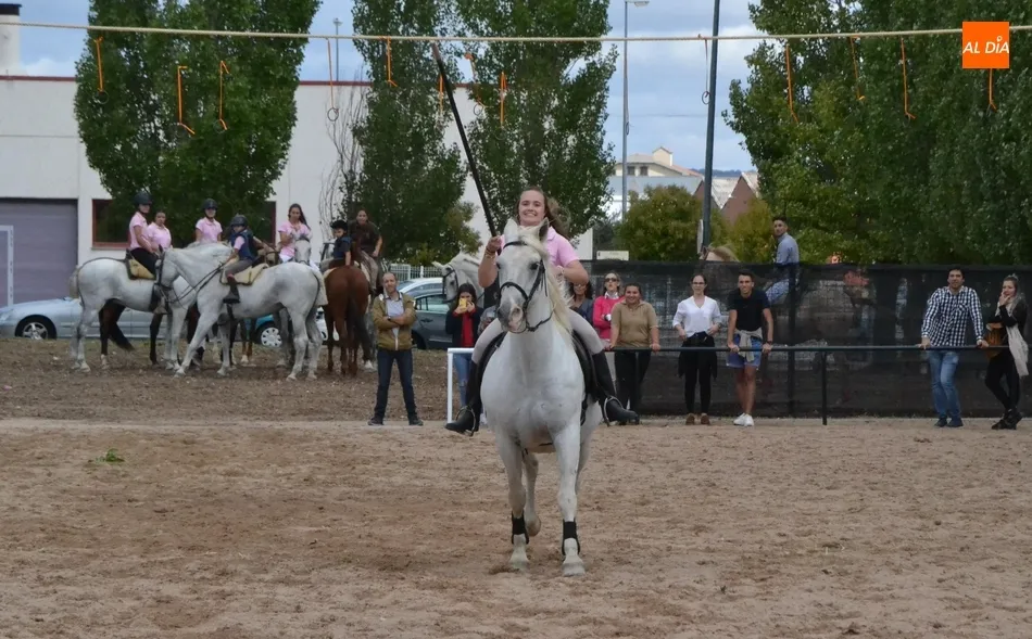 Esos jinetes y amazonas se quedaron junto a la pista para participar, una media hora después, en el estreno de la mañana dominical: un Concurso de Anillas de inscripción libre y gratuita (se requería que los participantes estuviesen aptos para montar a caballo). En total, el certamen contó con 16 competidores, 11 jóvenes y 5 adultos, que hicieron varias pasadas intentando coger con sus garrochas alguna de las anillas colgadas de una cuerda extendida de un lado a otro de la pista.