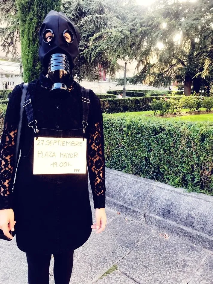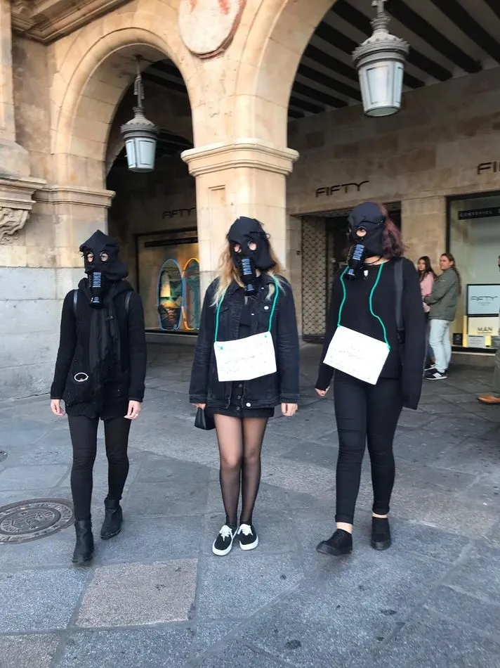 Este domingo, entre las 18.00 y las 20.30 horas, estuvieron merodeando por el centro de la ciudad y el casco histórico varias personas con máscaras de gas hechas a mano y todas vestidas de negro con una pancarta que decía: ?27 de septiembre, 19.00, Plaza Mayor?.