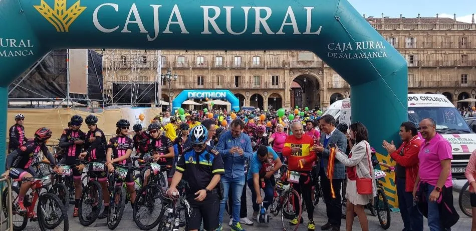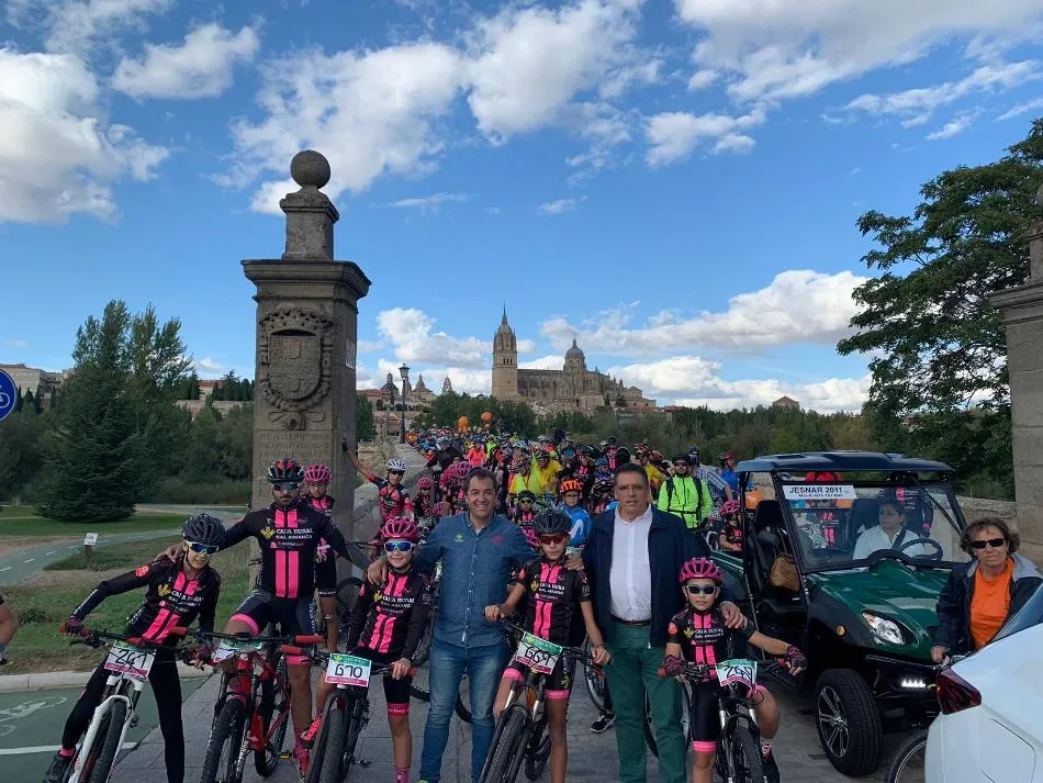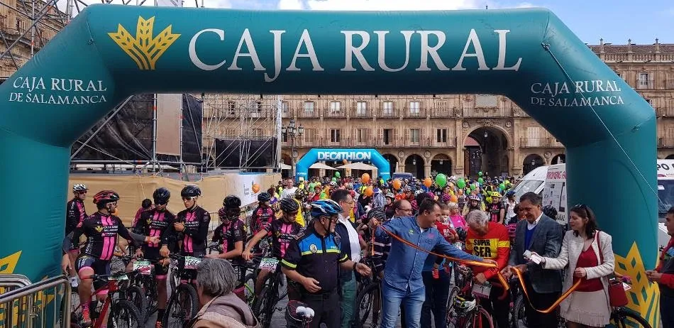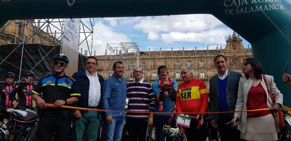 Al punto de inicio en el ágora salmantina se acercaron el alcalde de la ciudad Carlos García Carbayo, acompañado de la concejala de Medio Ambiente. También acudió Agustín Pérez, director comercial de Caja Rural de Salamanca, principal patrocinador del día de la bici. Todos ellos procedieron al protocolario corte de cinta acompañando a Oché Alonso, presidente de PROMESAL, a Agustín Tamames, representante de los ciclistas charros, y a los niños y niñas de la Escuela de Ciclismo PROMESAL.