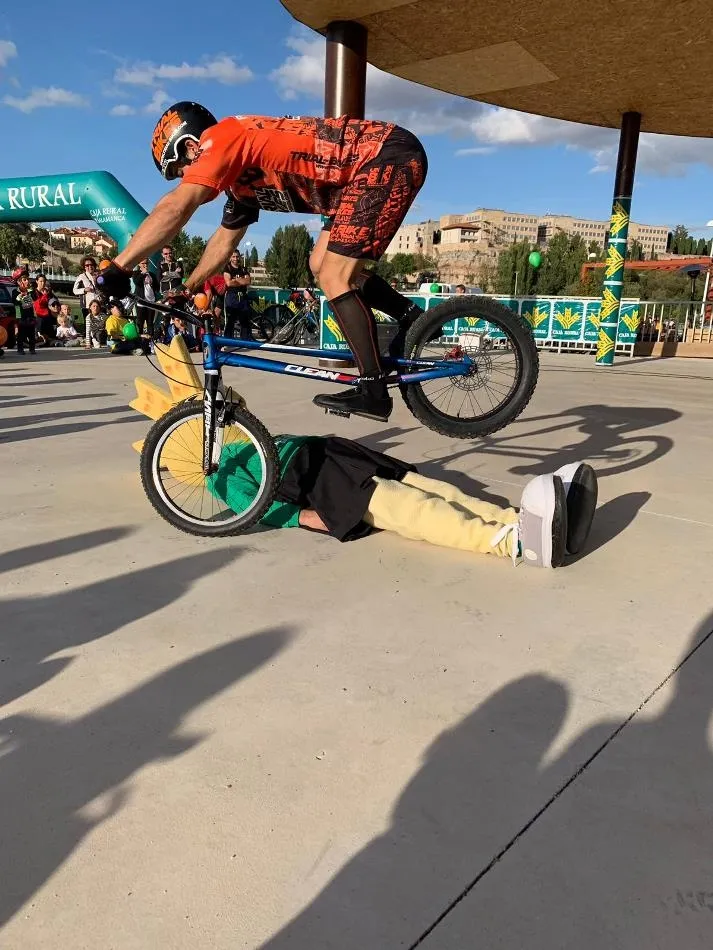 La ruta ciclista concluyó en el Parque Elio Antonio de Nebrija, donde PROMESAL había programado un gran final de fiesta, con hinchables, premios, sorteos y exhibición del showrider salmantino Pablo Bravo.