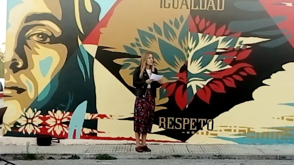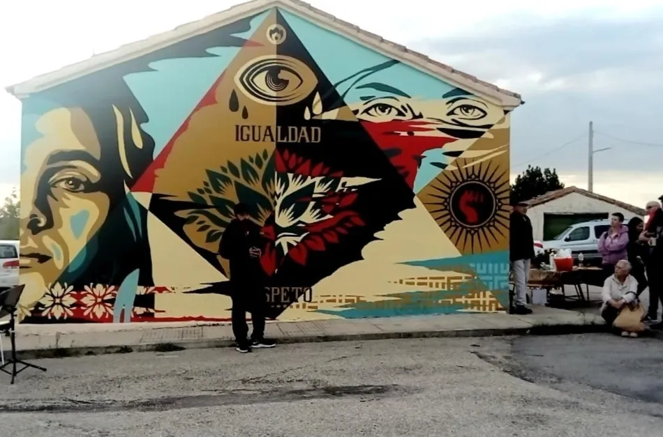 El Ayuntamiento de Villasdardo presentaba el pasado viernes el mural con el que pretende recordar la lucha de la sociedad y en especial de las mujeres, contra la violencia machista, obra que ha sido plasmada por Decoma en una de las fachadas del edificio consistorial y cuya realización se incluye en el programa del Pacto de Estado contra la violencia de género.