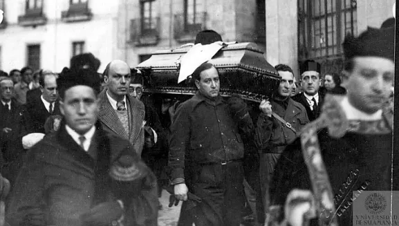 A las once de la mañana, en la iglesia de la Purísima, se celebran los solemnes funerales, que presiden Fernando y Rafael Unamuno, el rector, D. Esteban Madruga, y el decano de Letras, Ramón Loscertales.