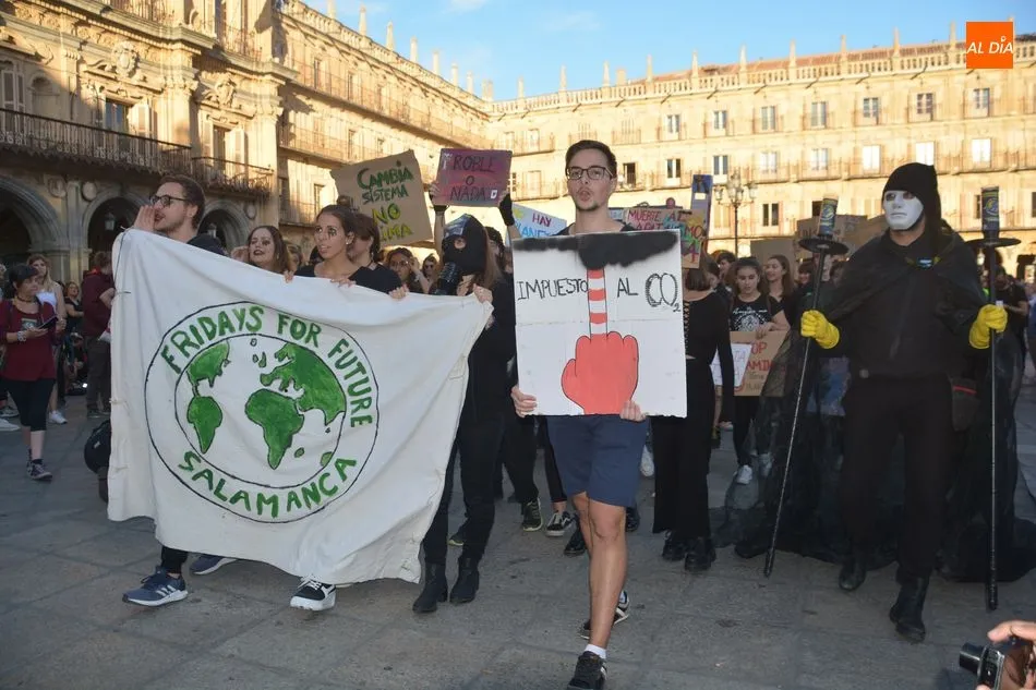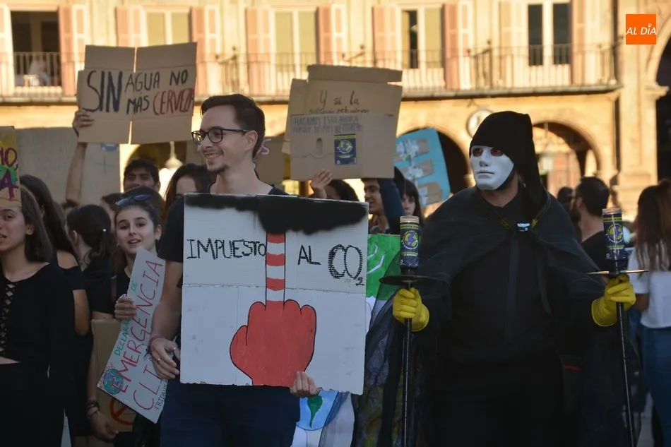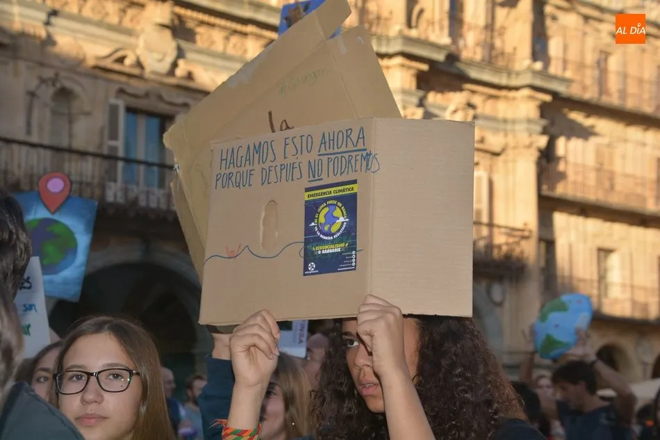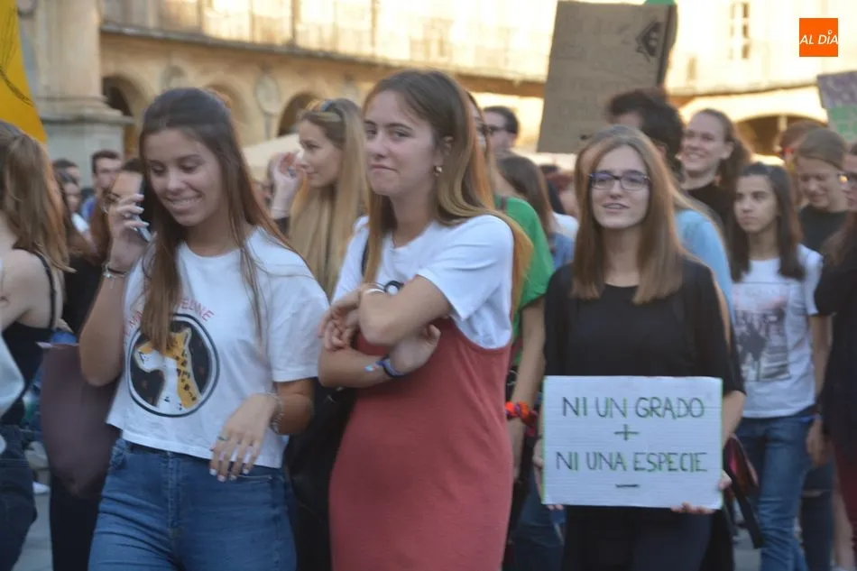 Salamanca se sumó este viernes a la Huelga Mundial con el Clima con una manifestación convocada por Fridays for Future bajo el lema ?Unidos por el clima?. Además, por la mañana hubo otra manifestación convocada por el colectivo de estudiantes.