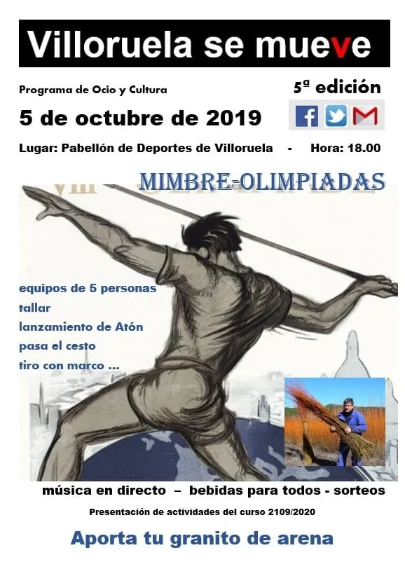 La asociación Villoruela se Mueve celebrará el inicio de su quinto curso de actividades con unas Mimbre-Olimpiadas. El pabellón municipal acogerá la cita, que tendrá lugar el sábado 5 de octubre a las 18 horas.