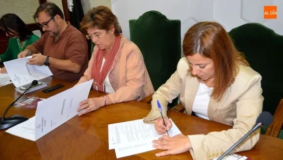 Patricia Valle y Elena Martín, alcaldesas de Hervás y Béjar respectivamente, junto a José Antonio Sánchez, técnico de la Oficina de Turismo de Baños de Montemayor, en representación del alcalde, Oscar Mateos, han firmado el convenio de colaboración de los tres municipios en la 6ª edición de la Marcha del Emperador Trajano que organizan los tres consistorios dentro de los actos del Día de la Ruta, de la Red de Cooperación de Ciudades en la Ruta de la Plata.