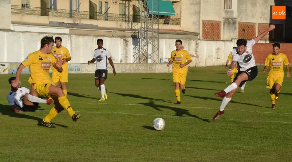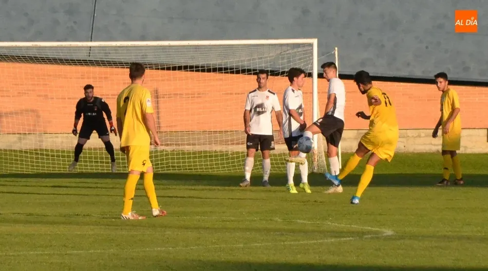 Tras unos cinco minutos iniciales de tanteo, el Ciudad Rodrigo asumió las riendas del partido, fabricando algún primer remate, como uno de cabeza en el 6? de Javi Moríñigo a un saque de esquina de Alberto García que despejó un defensa en el primer palo; un disparo en el 11? de Alberto García tras una buena combinación en la que habían participado Risueño y Marcial que se marchó desviado; y otro tiro en el 13? de Manu Blanco dentro del área que atrapó el guardameta.