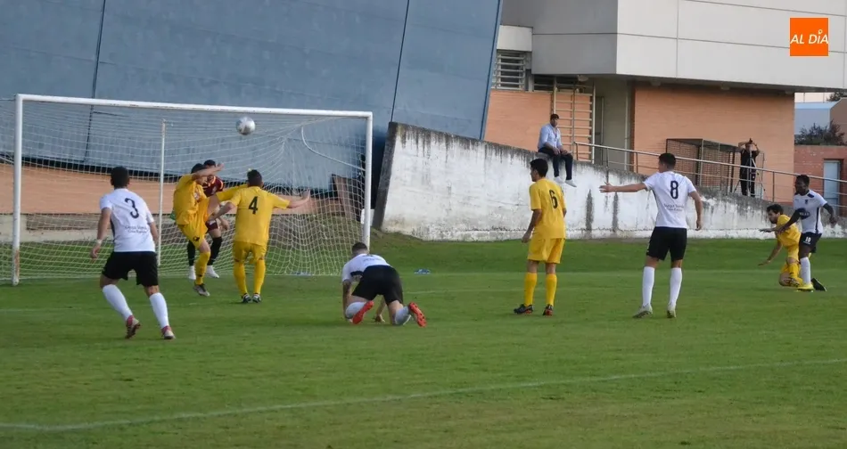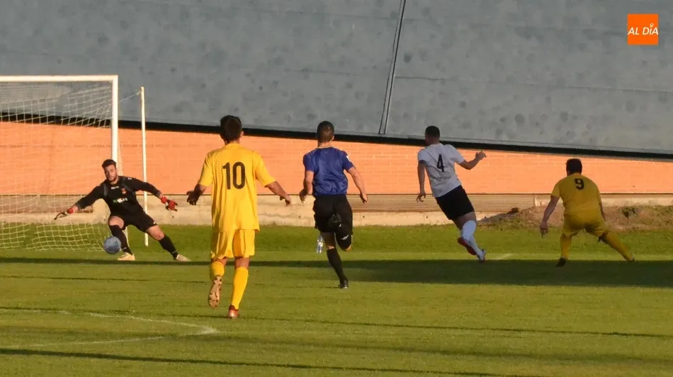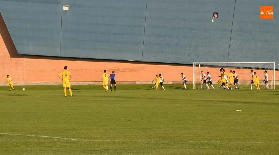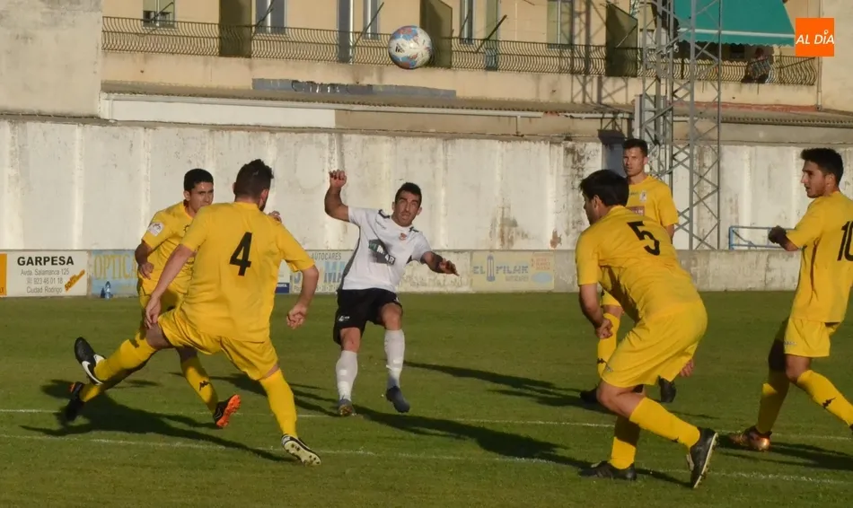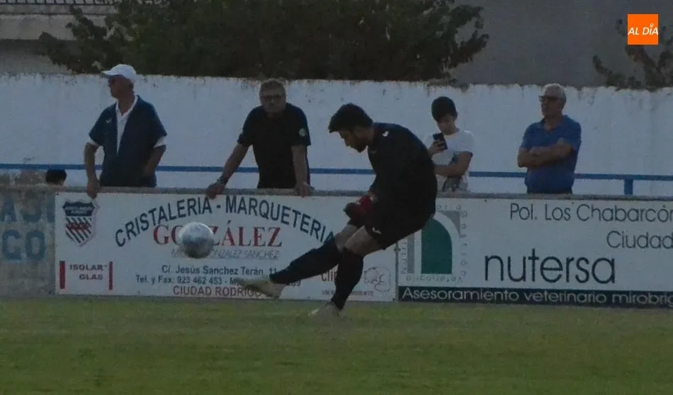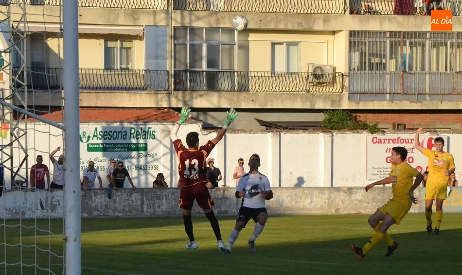 Entre medias, en el 30?, el Ciudad Rodrigo hizo su disparo a puerta más potente de la primera parte: un lanzamiento de falta de Marcial que despejó el guardameta. El tramo final de este primer período fue un poco más igualado (los mirobrigenses cedieron dominio), aunque hubo dos ocasiones locales: un buen remate de cabeza de Manu Blanco a un balón colgado por Héctor que se marchó fuera; y un disparo en 2ª opción de Sergi que se perdió por encima del larguero. La primera parte se cerró con una jugada muy enrevesada en el área del Ciudad Rodrigo que culminó con un disparo visitante que se estrelló en el palo.