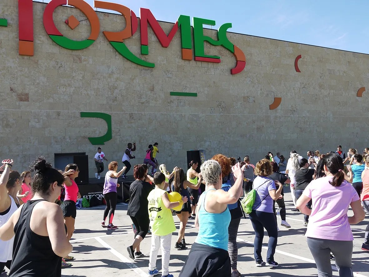 Esta masterclass, organizada por la Asociación de Enfermedades Raras de Castilla y León (AERSCYL), se ha celebrado en el parking exterior del Centro Comercial El Tormes y en ella han participado tanto mayores como niños. Los más pequeños, además de hacer zumba, han podido pasar un rato divertido con los monitores del Club Infantil de El Tormes.