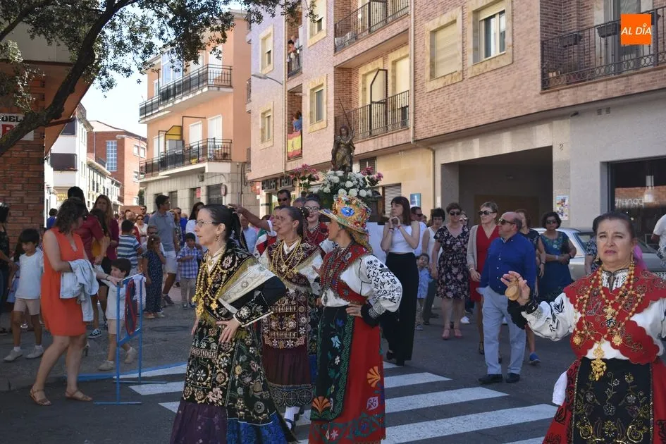 Los vecinos del barrio San Miguel han despido hoy sus fiestas con la salida en procesión de la imagen de San Miguel junto al grupo folclórico de Alba de Tormes. De manera previa a la procesión, se ha celebrado una eucarística en la Iglesia de las Madres Isabeles, desde donde salió la imagen hasta llegar a la plaza que lleva el nombre del santo.