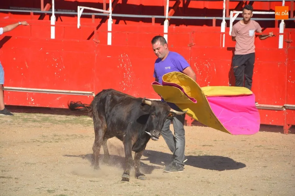 Santiz disfruta de su domingo `torero´ en el día de su patrón, vecinos y aficionados del mundo taruino se han acercado a la plaza de toros del municipio para divertirse en el toro del aguardiente