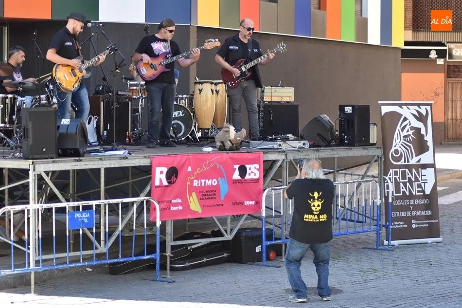 Tiene la Plaza su rumor de agua, su gente en la terraza, su ir y venir de domingo, sus niños que bailan al son de cualquier ritmo y una motivación especial en esta fiesta septembrina: el aniversario de Arcade Planet, el estudio de grabación y local de ensayos que se ha instalado en el barrio y la puesta en marcha, dentro de Radio ZOES del programa de música enteramente salmantina ?A nuestro ritmo?. Y nada mejor para animar una fiesta musical que la música, por eso y bajo el auspicio de la gente de Arcade Planet, entre otros, la mediodía ha estado dedicada a un concierto al aire libre en el que hemos podido descubrir a Luis Ullán y disfrutar de una panda de veteranos, How Are Blues.