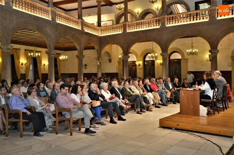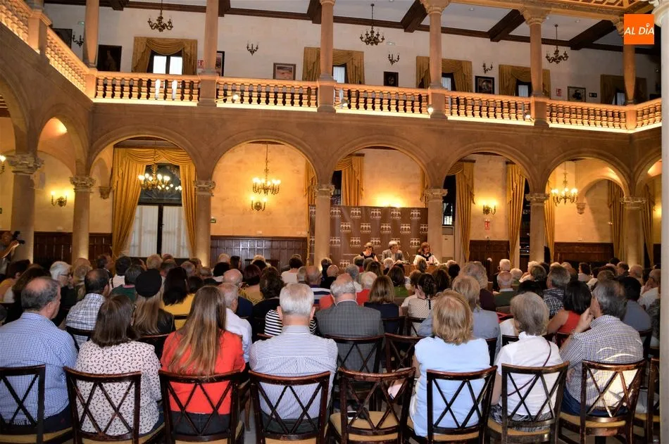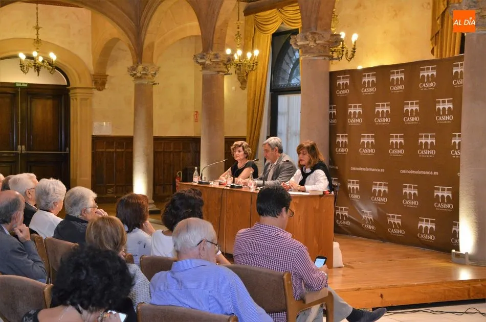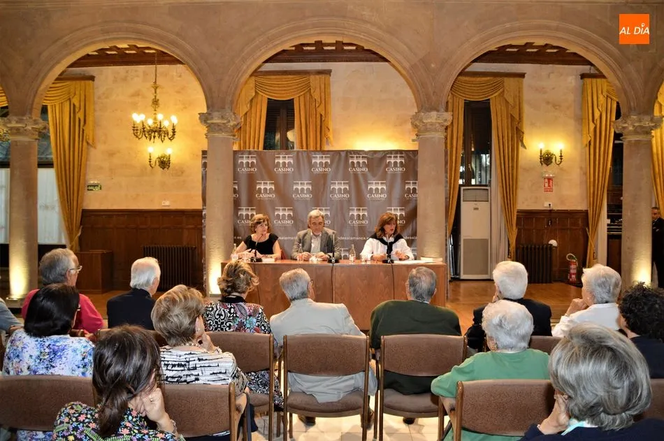 En la presentación en el Casino, el escritor salmantino ha estado acompañado por Isabel Bernardo y Mari Ángeles Pérez López