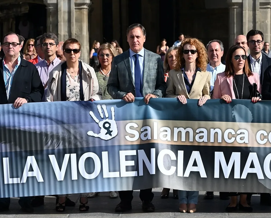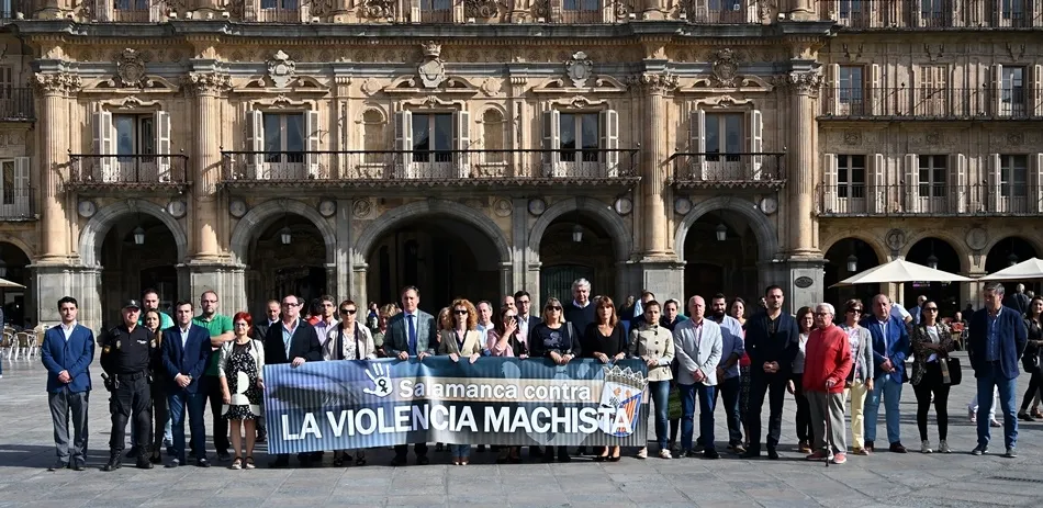 Al igual que en anteriores convocatorias de este tipo en Salamanca, representantes de la Corporación y de otras entidades y organizaciones han querido mostrar su rechazo a la violencia de género en su conjunto, un propósito que ha quedado patente con el lema 'Salamanca contra la violencia machista', mostrado en la pancarta.