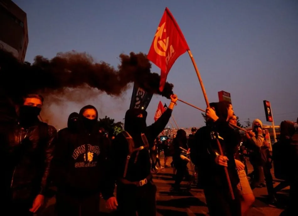 Los manifestantes, que en su recorrido han volcado algún contenedor y arrojado un petardo ante el cuartel de la Guardia Civil, se encuentran sobre las 8 horas ante la Subdelegación del Gobierno central en Girona.