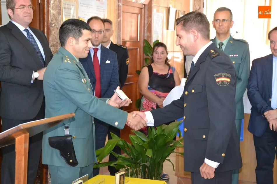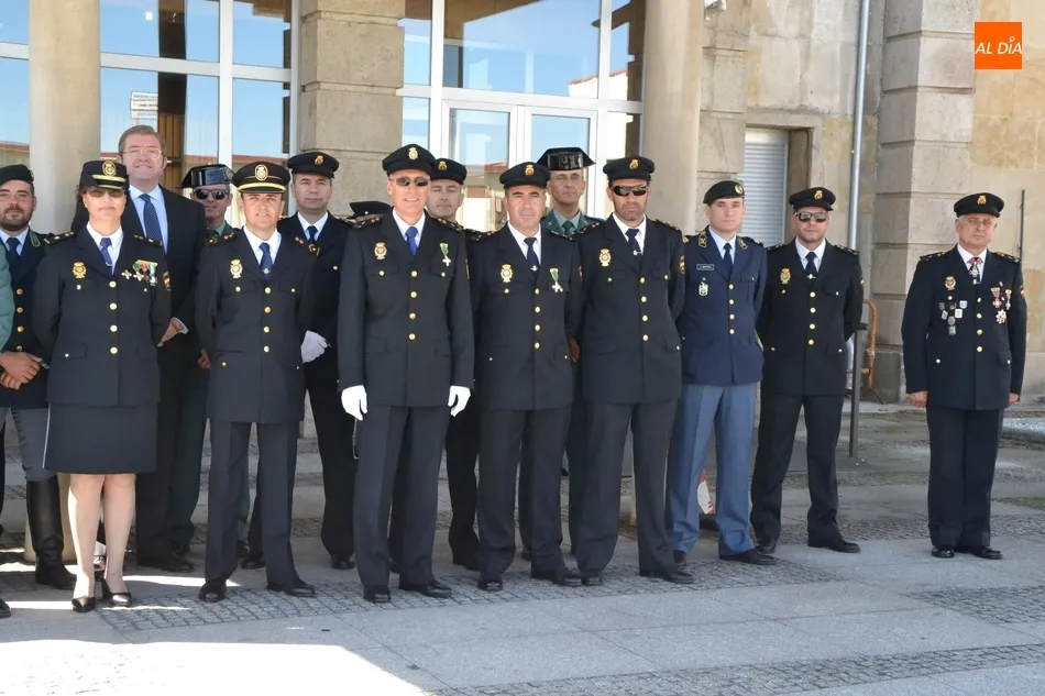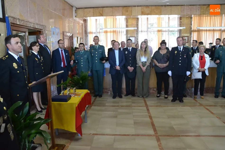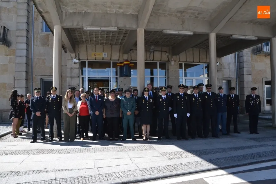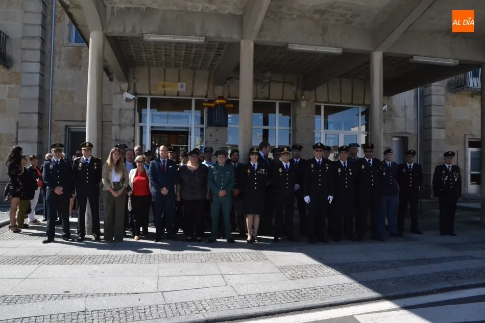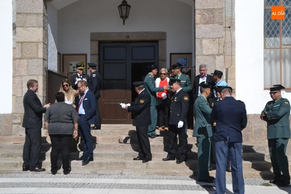 Allí se dieron cita la mayor parte de los integrantes de la Comisaría de Fuentes de Oñoro, la Corporación Municipal encabezada por el alcalde Isidoro J. Alanís; el alcalde de Ciudad Rodrigo Marcos Iglesias; el Jefe y la delegada de la Policía Local mirobrigense, Narciso Caridad y Laura Vicente (también acudió otro agente); el capitán de la Guardia Civil de Ciudad Rodrigo, Santiago Ruiz, junto a algunos agentes más; y representantes de la Polícia de Segurança Pública, y de la Guardia Nacional Republicana de Portugal.