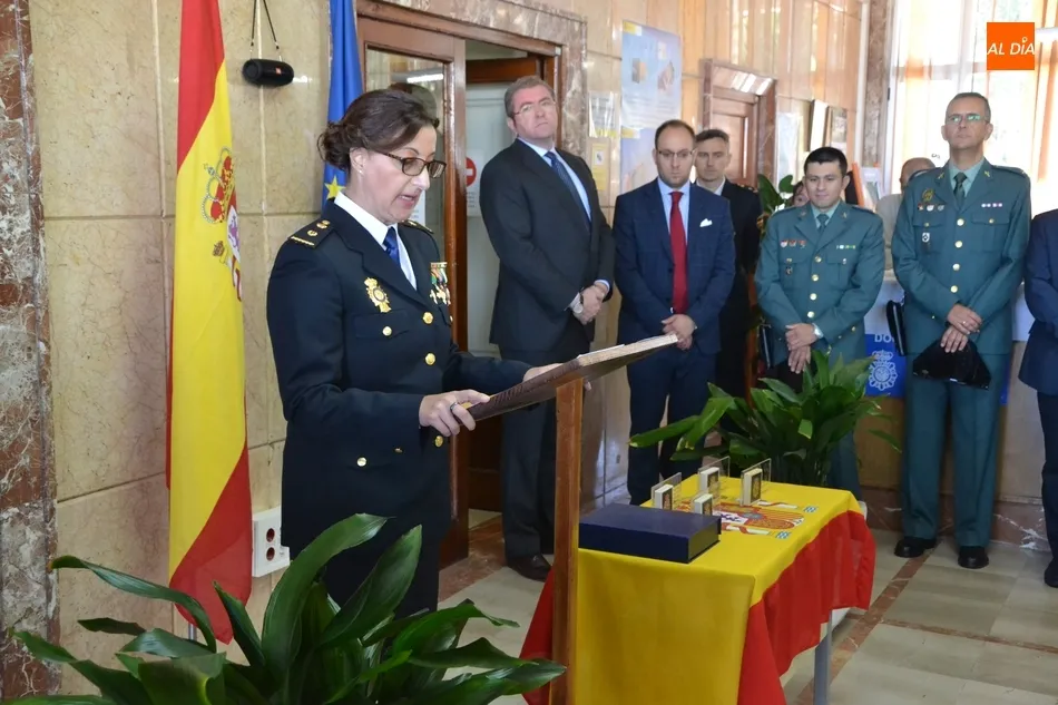 Durante su intervención, tuvo un recuerdo para los policías heridos y fallecidos en acto de servicio, y mostró su agradecimiento al Ayuntamiento de Fuentes de Oñoro por ?su apoyo?, como cuando se quedaron sin servicio telefónico el pasado mes de agosto. Además, tuvo unas palabras en portugués para las representantes de aquel país, y expresó que quieren ?crecer, ser mejores y para ello os necesitamos?. Este acto en la Comisaría tuvo como momento principal la entrega de una serie de distinciones, aunque según expresó Nuria Roncero, ?la condecoración íntima más importante es la satisfacción por el deber cumplido?.