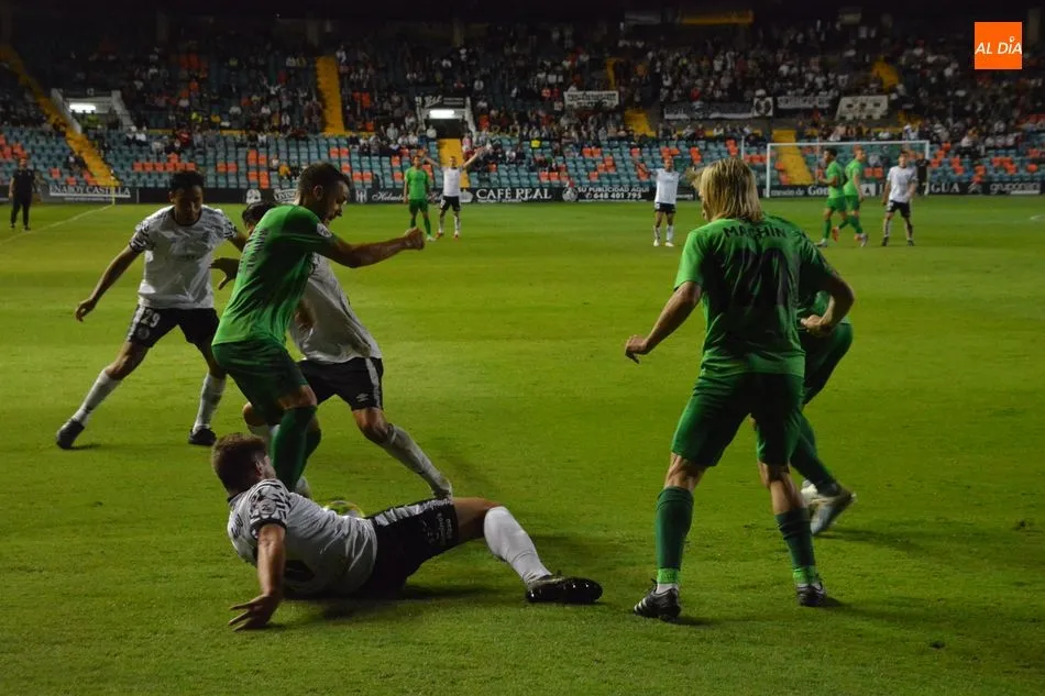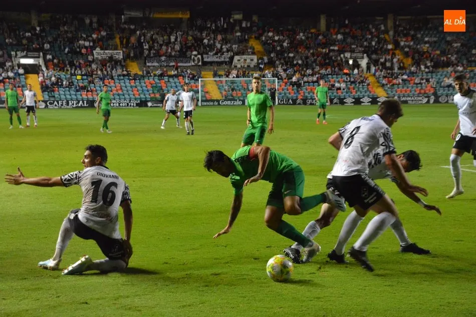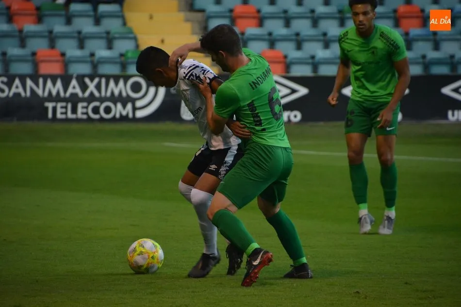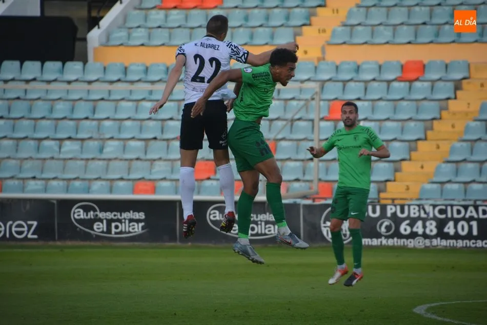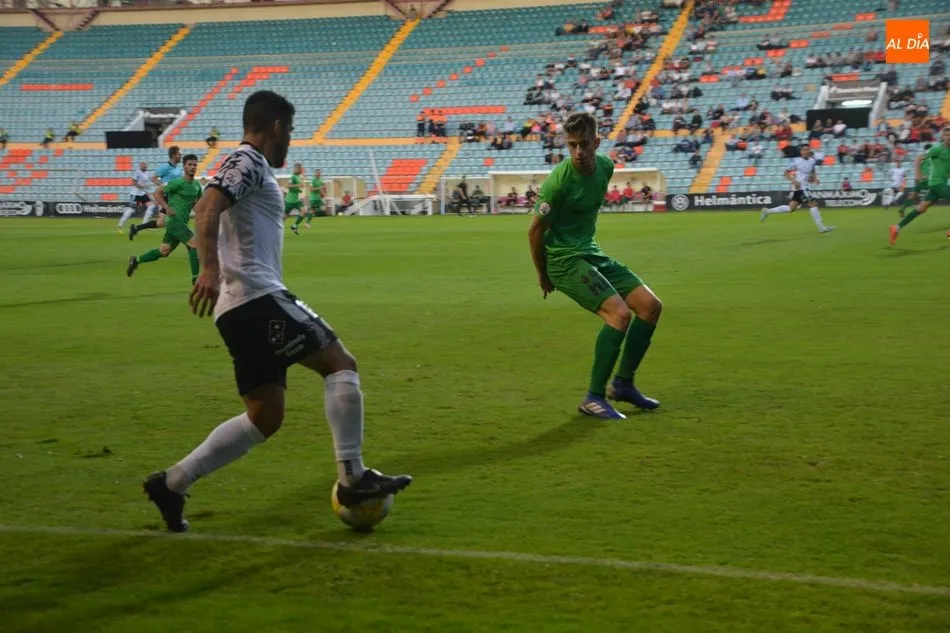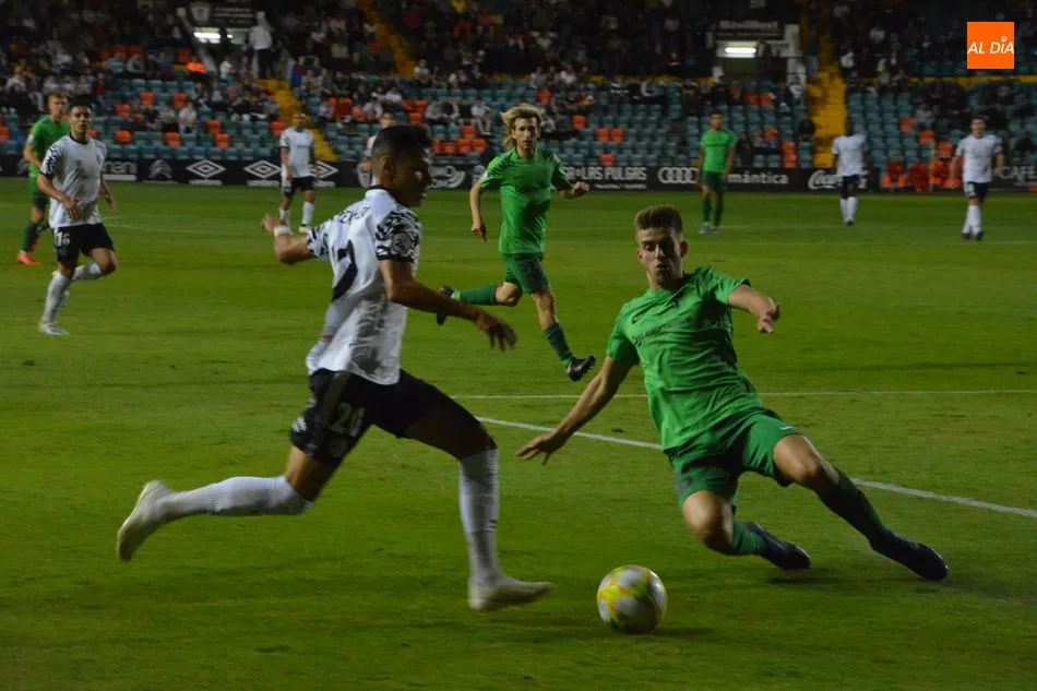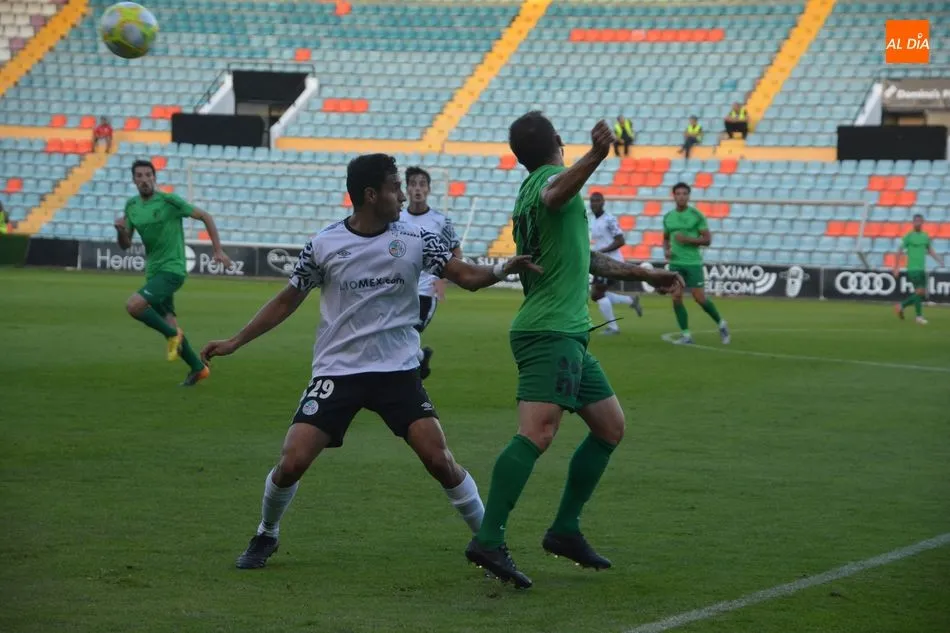 El conjunto blanquinegro se postuló en el césped con un 4-1-4-1 con Mati como pivote y Gio en la punta del ataque charro para tratar de hacer daño al bando de Fernando Estévez. Las mejores ocasiones del primer tiempo llegaron de la mano de Calderón y Martín Galván, que estrelló un balón en el larguero mediante un tiro de falta. Por su parte, Carlos Indiano, ex del Salamanca UDS, contestó al azteca por la misma vía y puso en serios aprietos a Andrés Sánchez en un duelo que disminuyó de intensidad de forma considerable hasta el descanso.
