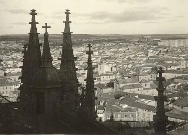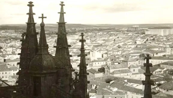 Desde los pináculos de la Catedral Nueva, está captada esta imagen, que sobrevolando el caserío, alcanzaba el horizonte de las Villas y la Armuña.