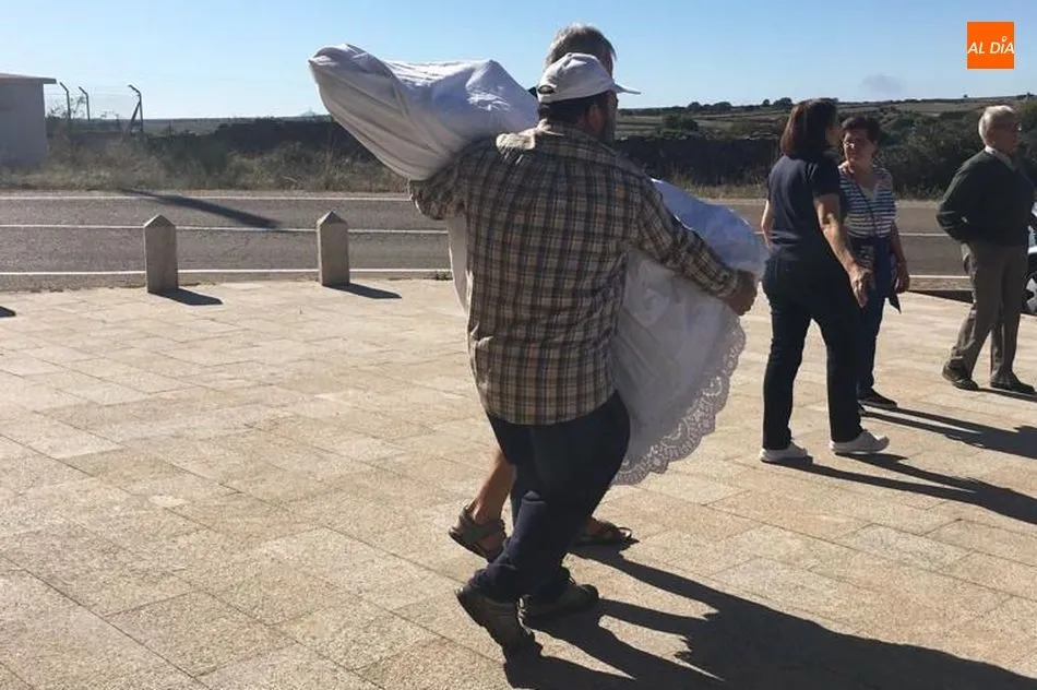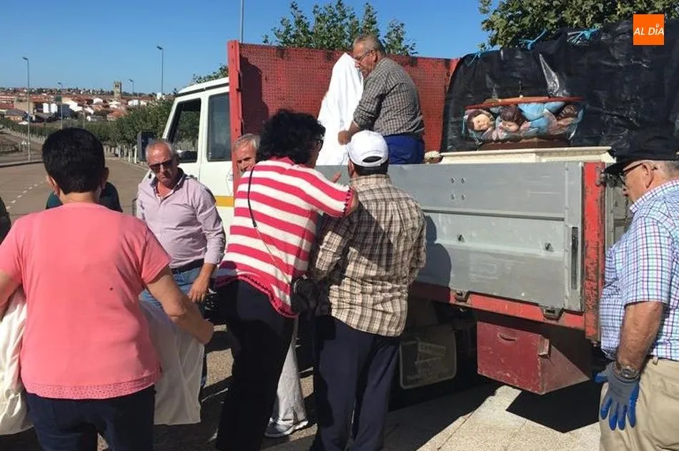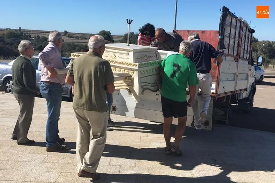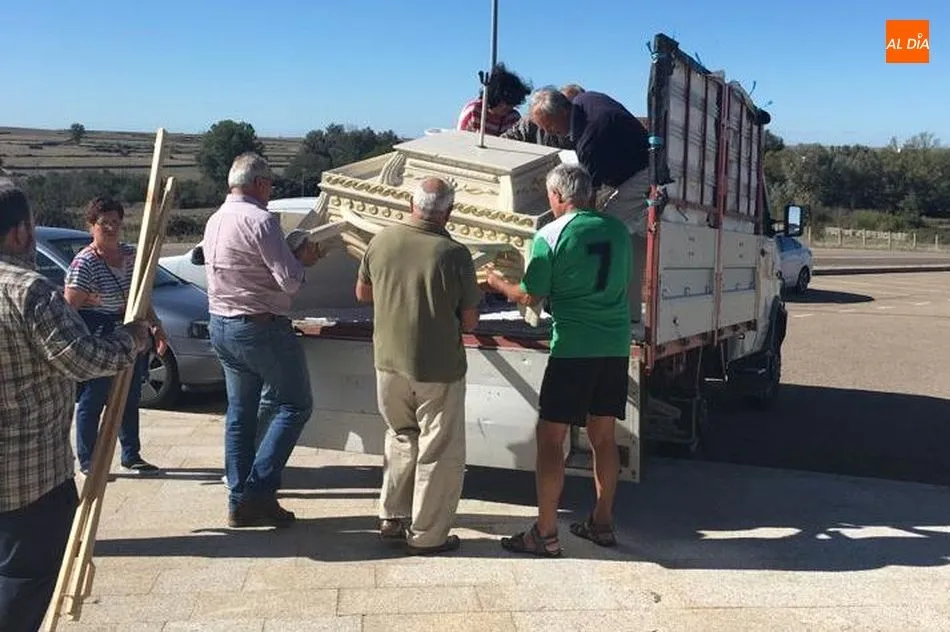 Un grupo de vecinos de Vitigudino procedía este viernes al traslado de la Virgen del Socorro desde su ermita a la iglesia parroquial de San Nicolás de Bari. El motivo de este traslado obedece a las actuaciones que se llevarán a cabo en el bajo-teja de la ermita, aquejado por la carcoma. La imagen de la Virgen del Socorro era subida a un camión, junto a su peana, para su posterior colocación en la iglesia, donde permanecerá, hasta que concluyan los trabajos en la ermita.