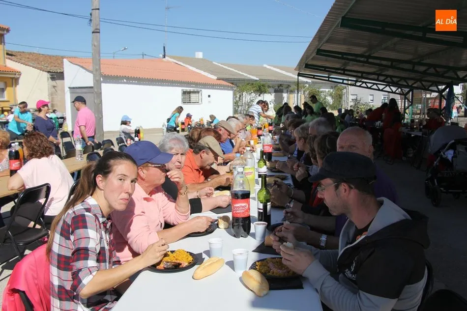 Con cabezudos y un encierro de carretones a cargo de Encierros Infantiles Huertos, además de una clase práctica de toreo, comenzaba la programación festiva en la mañana de este sábado, actividades a las que seguiría una comida popular, que consistía en una paellada gigante preparada por ?Arroces al grano?, más de 400 raciones de paella que se repartieron entre los vecinos reunidos en torno a ?El Caño? para degustar este suculento menú, en el que se incluía pan, bebida y helado de postre. A su término, se llevará a cabo el clásico recorrido por las peñas amenizado por la charanga.