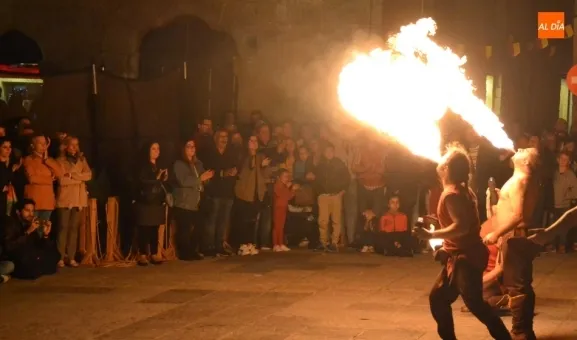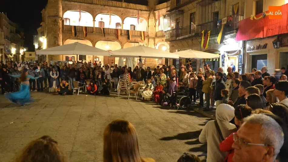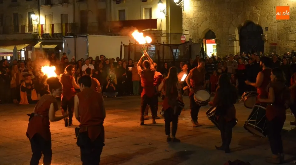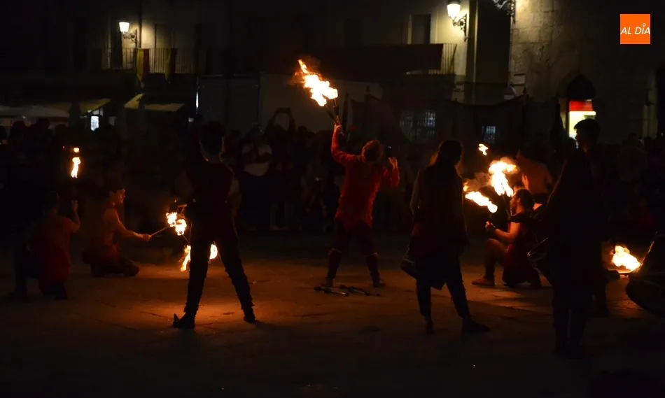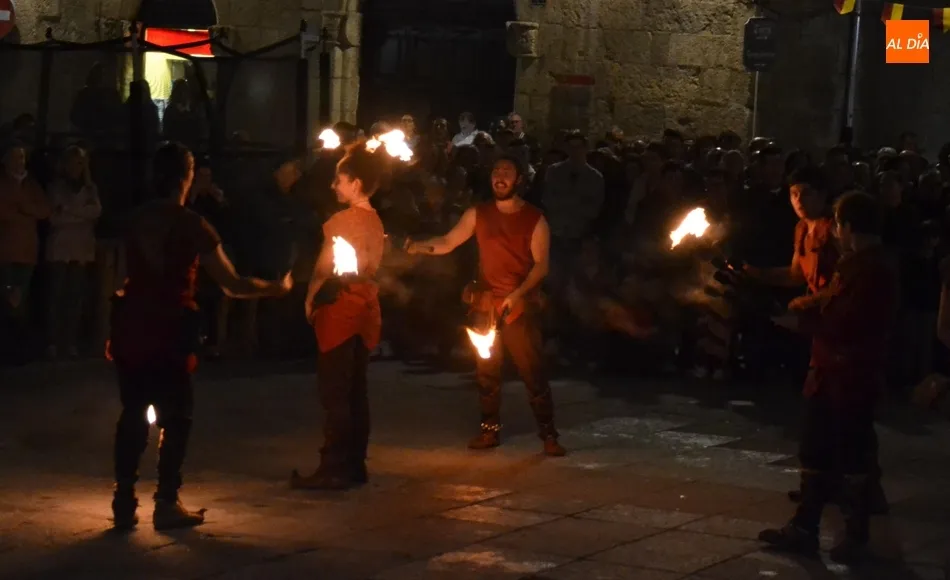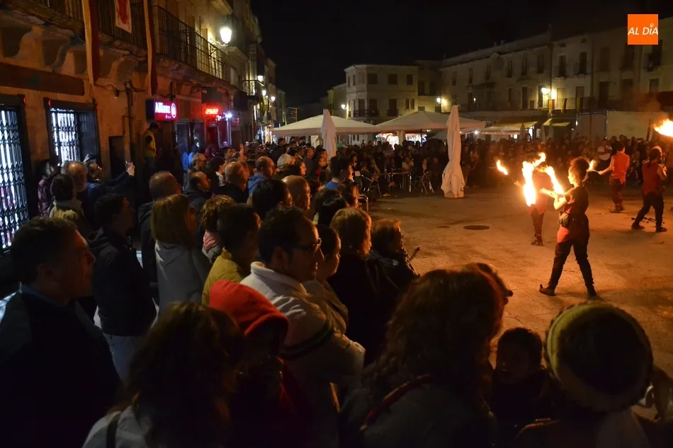 Nada más concluir la representación teatral de La Conjura de Ciudad Rodrigo en el Paseo Fernando Arrabal, los espectadores allí congregados fueron abandonando el lugar por el Registro, poniendo rumbo buena parte de ese público hacia la Plaza Mayor, para rematar la larga jornada de sábado de la Feria Medieval con un doble espectáculo.