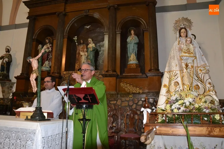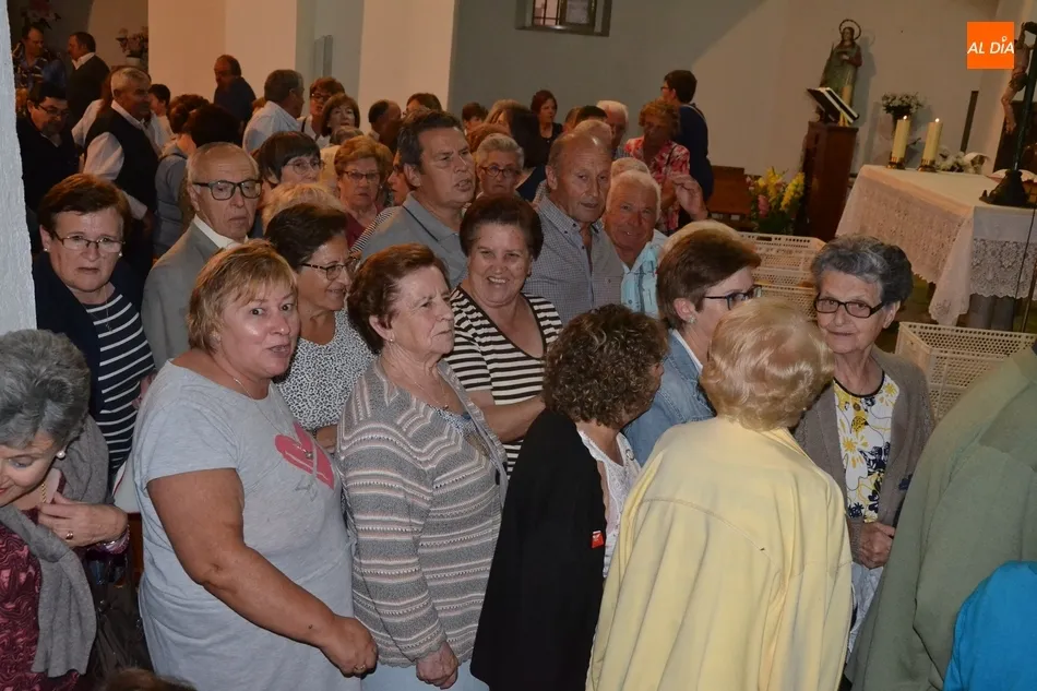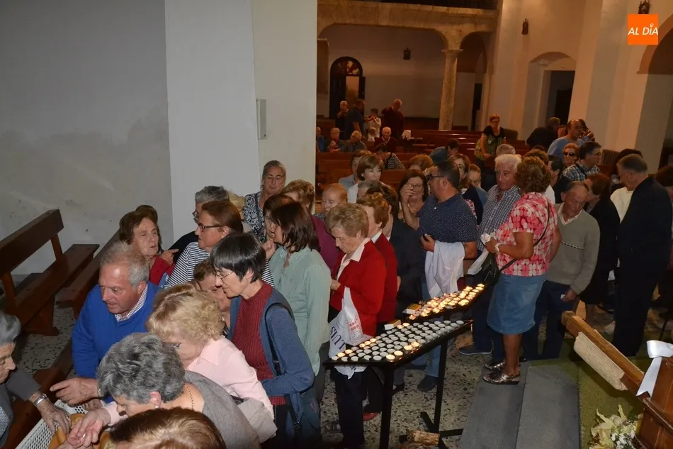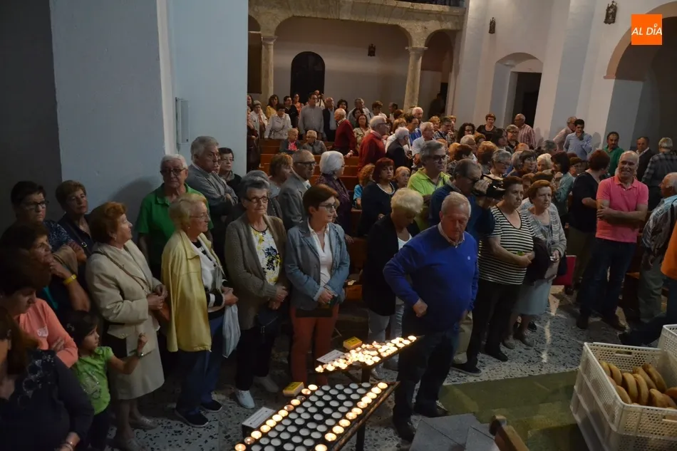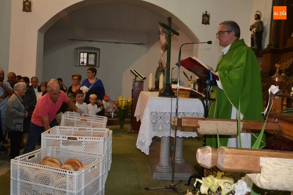 La tarde comenzó con la habitual Eucaristía en el templo, presidida por el nuevo párroco del barrio, Prudencio Manchado, quién estuvo acompañado por el Vicario Parroquial, Efraín Peinado. La celebración incluyó los rezos propios de la novena, y en su recta final, la bendición de las tradicionales roscas (en la zona del altar) por parte de Prudencio Manchado.