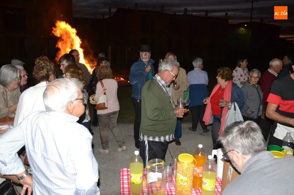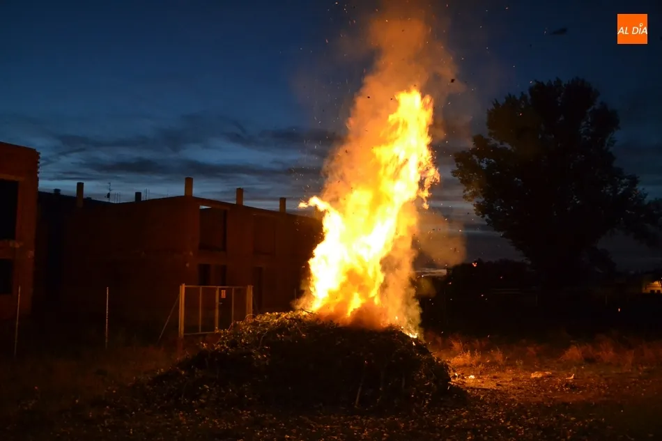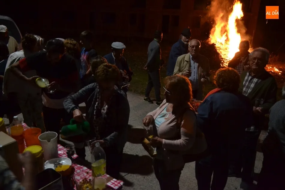 Con la venta todavía activa, se pusieron en marcha las dos grandes novedades de los actos festivos de este año: se prendió una hoguera y se lanzaron fuegos artificiales. En lo que respecta a la hoguera, que es prácticamente novedad absoluta en la celebración de la Virgen del Rosario (únicamente alguna persona de avanzada edad recuerda que hubiera en algún momento dentro de esta fiesta), se prendió en la zona del Regato Cachón. Allí se congregaron unas cuantas personas que pudieron tomar chochos, aceitunas y vino.