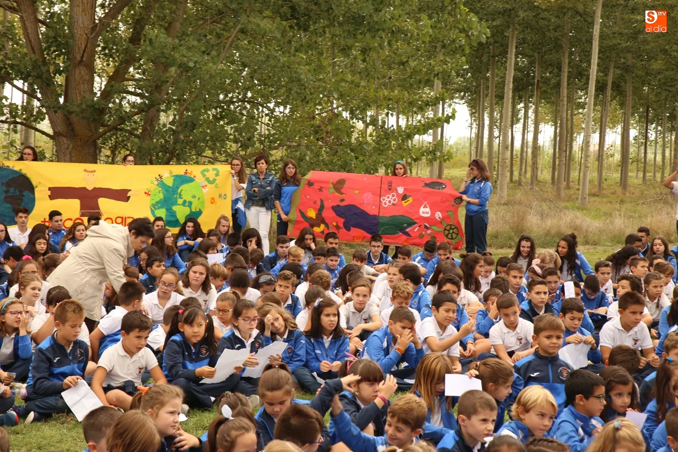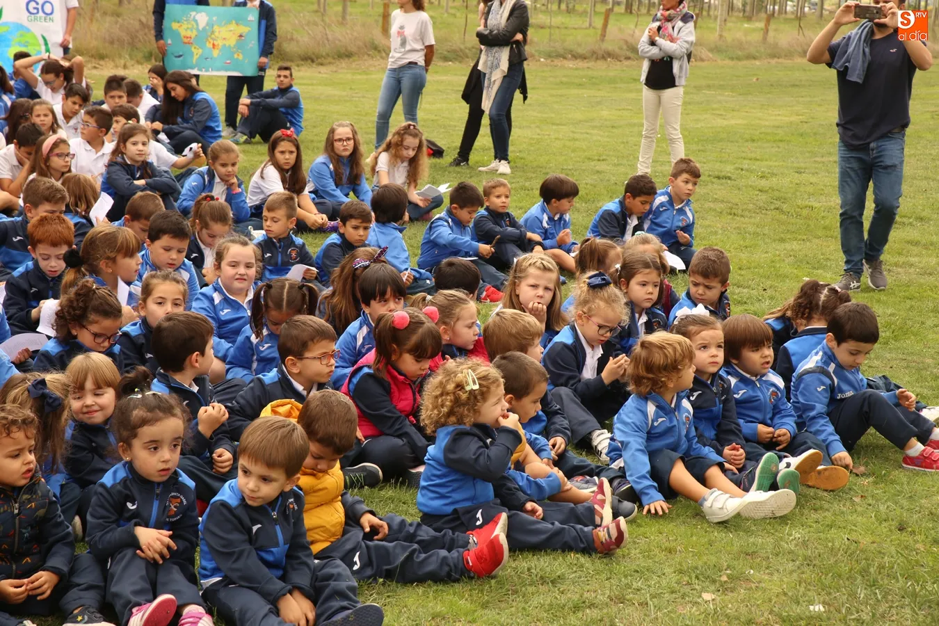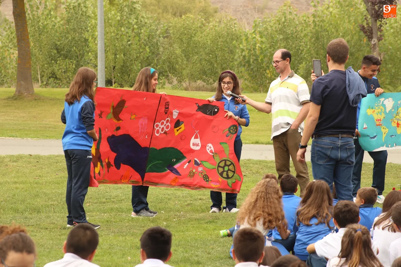 Durante la mañana, los alumnos del colegio tuvieron la oportunidad de reivindicar uno de los lemas principales de este curso, el de proteger y cuidar la tierra y a todos los seres vivos, uno de los mensajes principales de San Francisco de Asís. Y lo hicieron bailando, rezando y mostrando pancartas con mensajes en defensa de la ecología.
