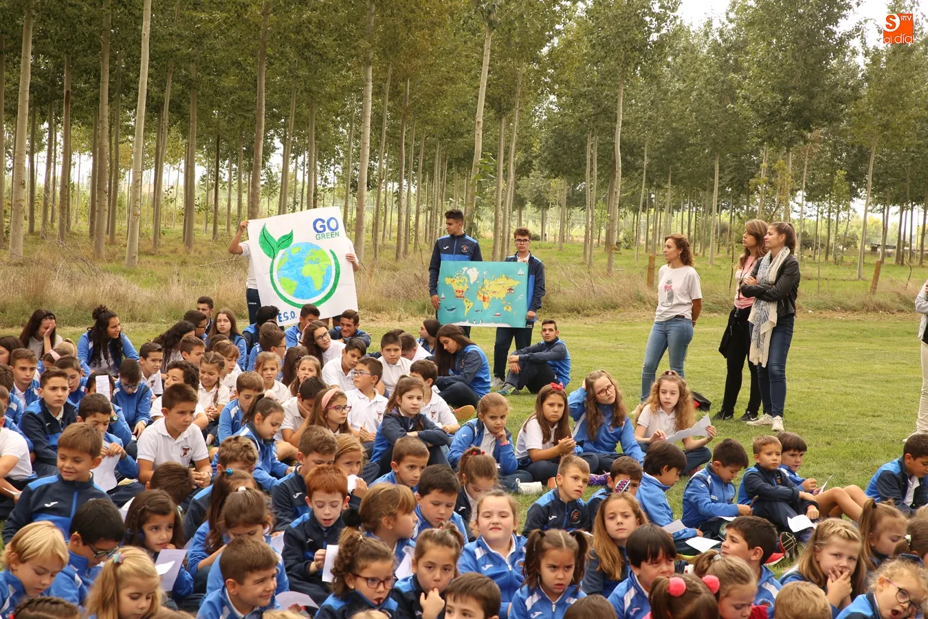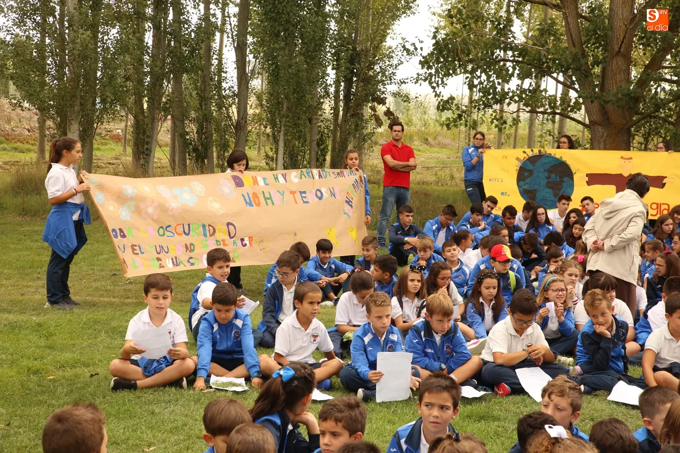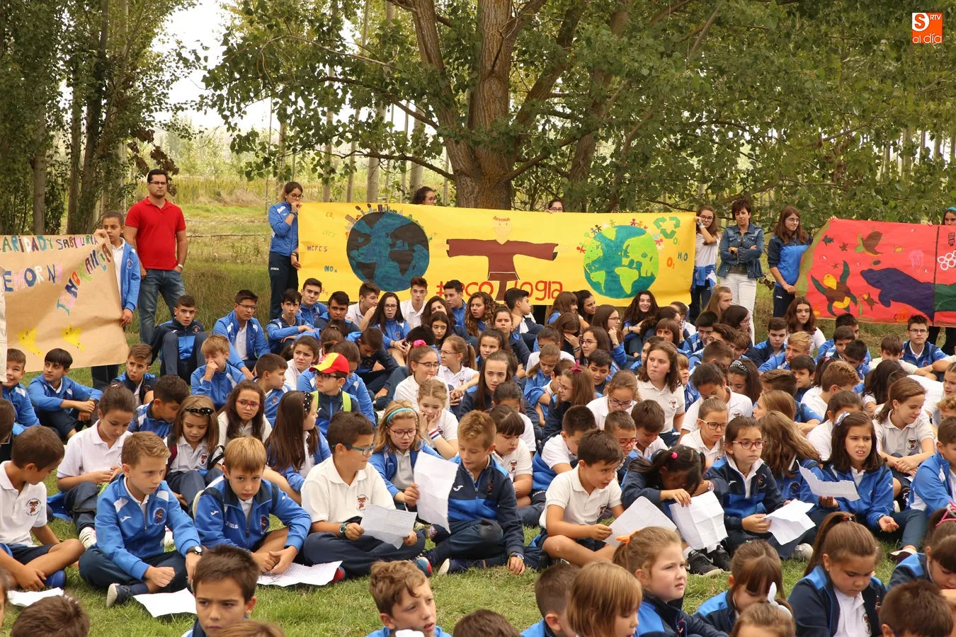 Durante la mañana, los alumnos del colegio tuvieron la oportunidad de reivindicar uno de los lemas principales de este curso, el de proteger y cuidar la tierra y a todos los seres vivos, uno de los mensajes principales de San Francisco de Asís. Y lo hicieron bailando, rezando y mostrando pancartas con mensajes en defensa de la ecología.