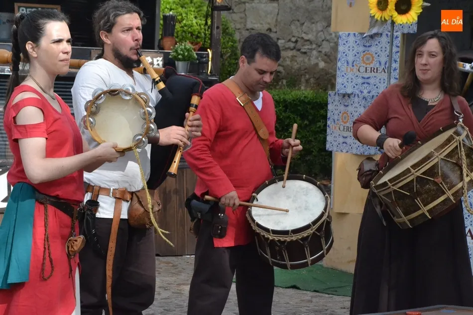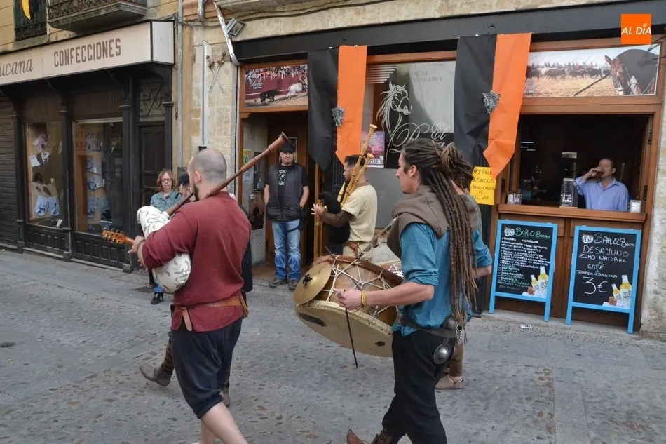 Asimismo, otro de los rasgos de esta Feria Medieval es la animación continua de las calles del centro histórico que tienen alguna que otra ornamentación. Como ya hemos publicado, esta animación corre a cargo de tres grupos diferentes: el grupo de Tambores y malabares Saltimbancos de Santa María, el grupo de música Zaragaitas, y el grupo de música Manta D?Ourelos.