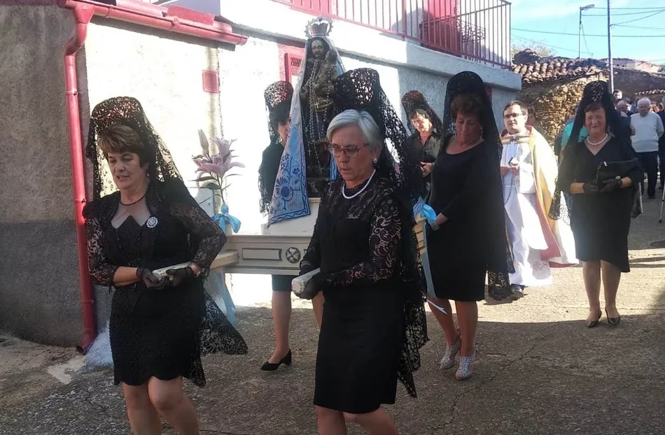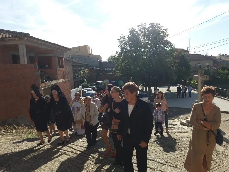 A su conclusión, fue turno para procesionar la imagen de la Virgen por las calles de la localidad, en una mañana soleada y con buena temperatura. La imagen fue portada durante el trayecto por las mayordomas, quienes a la conclusión del recorrido por las calles del municipio procedieron a rifar 8 roscones, uno por mayordoma.