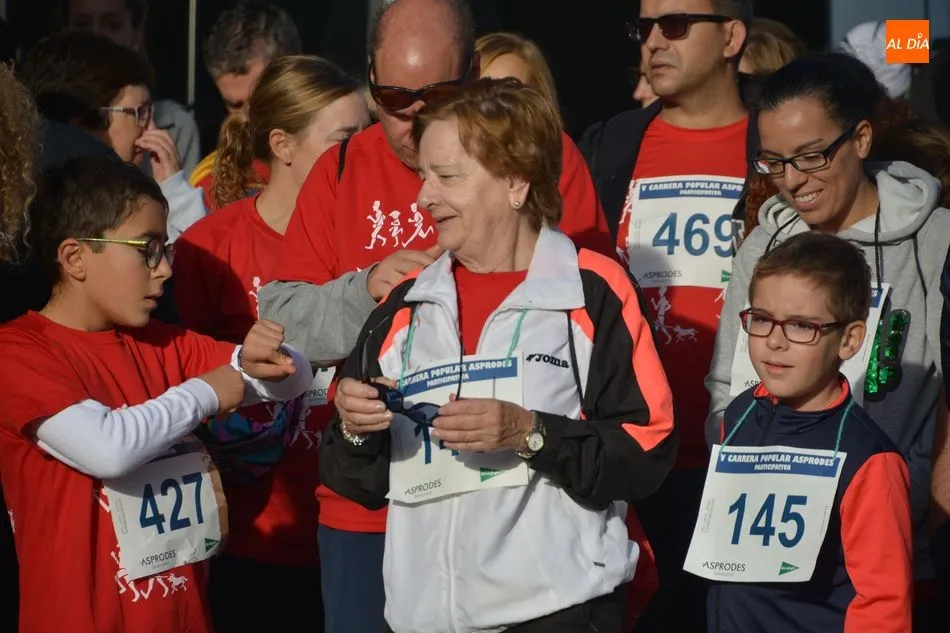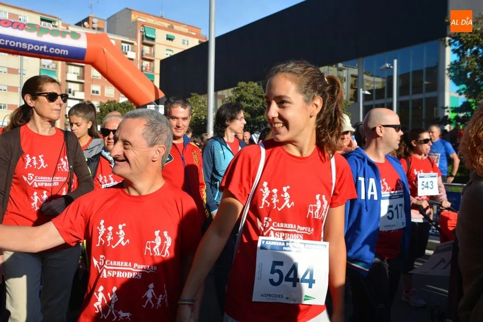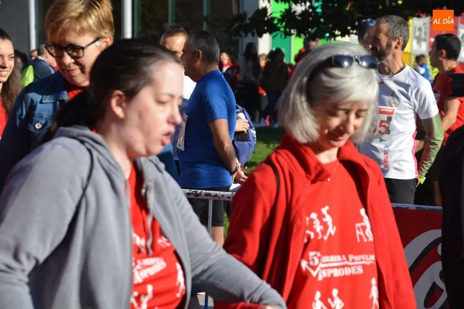 Cientos de salmantinos de todas las edades se han sumado este domingo a la celebración de la V Carrera Popular de Asprodes. La prueba, cuya salida se ha realizado en la calle Alonso de Ojeda, está dividida en una carrera competitiva de diez kilómetros y una marcha participativa de casi tres kilómetros de recorrido.