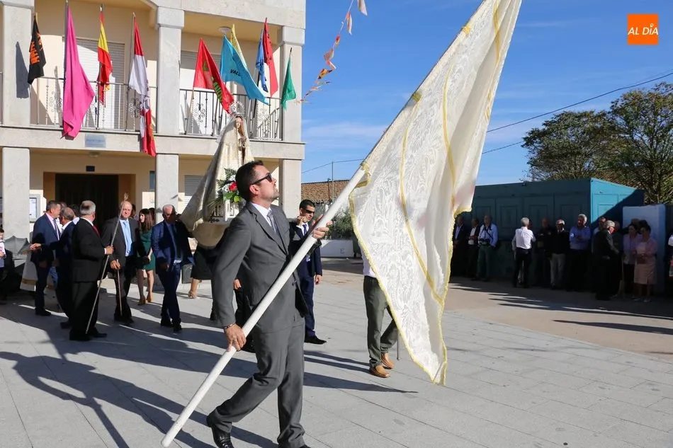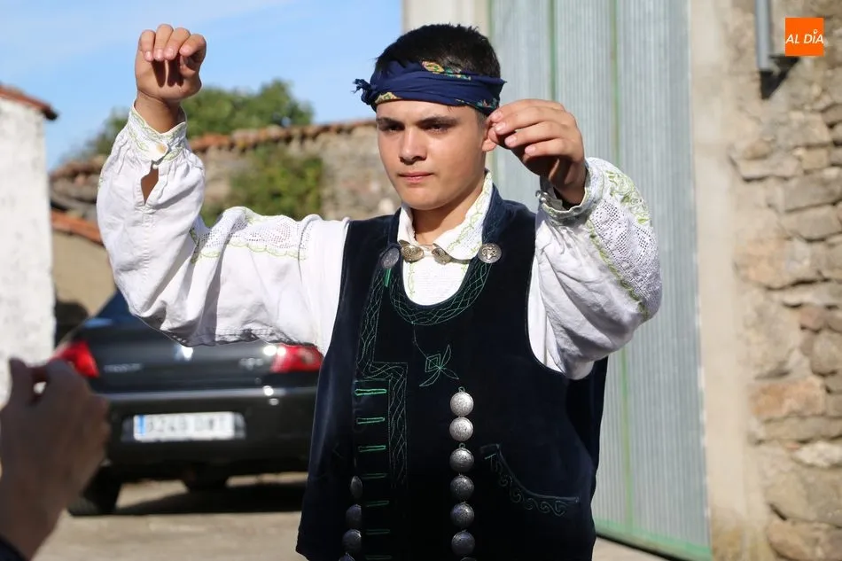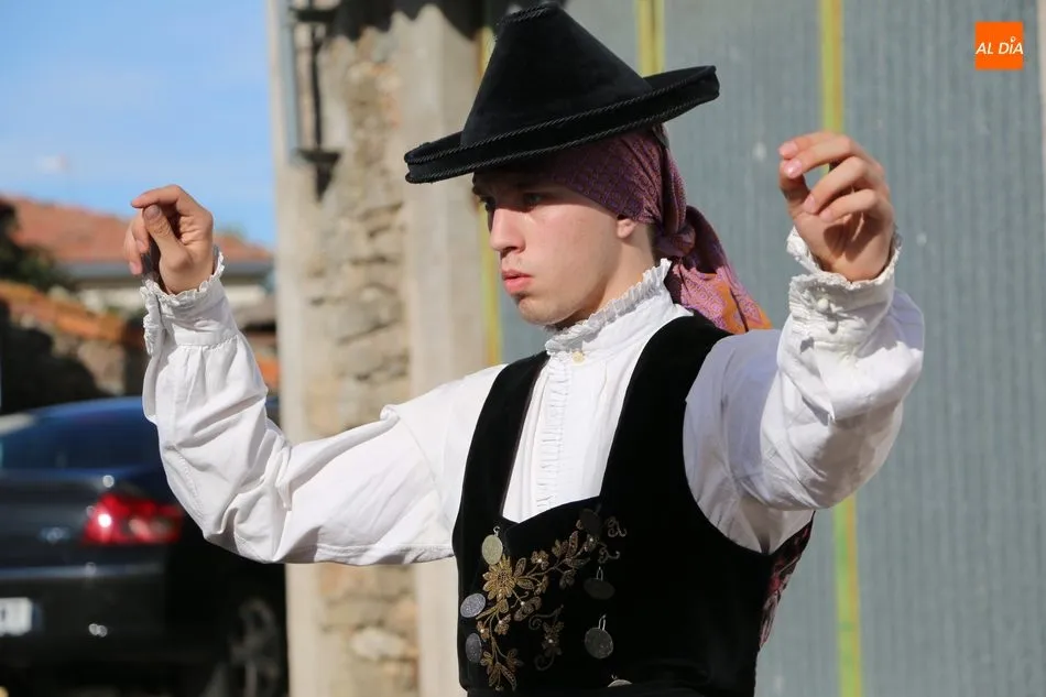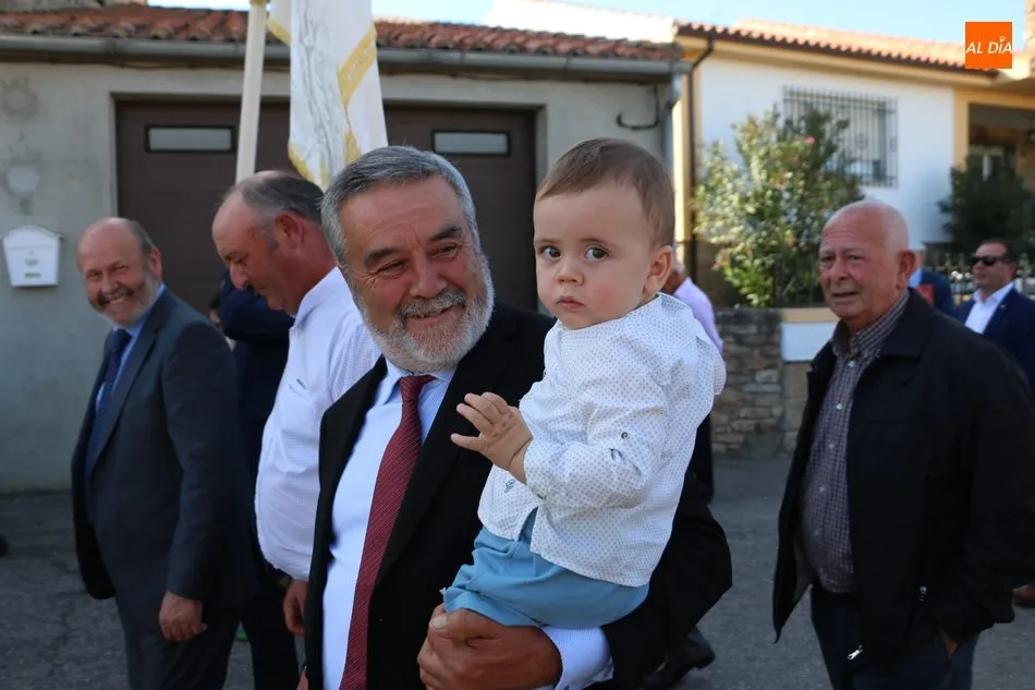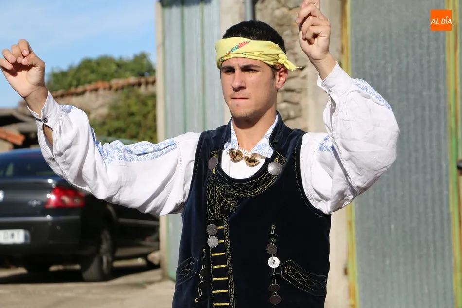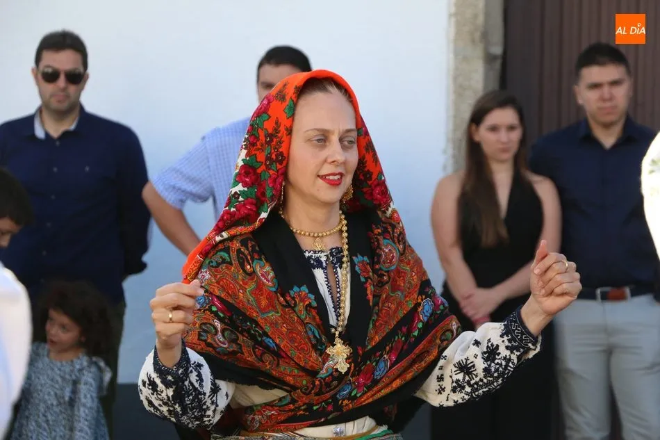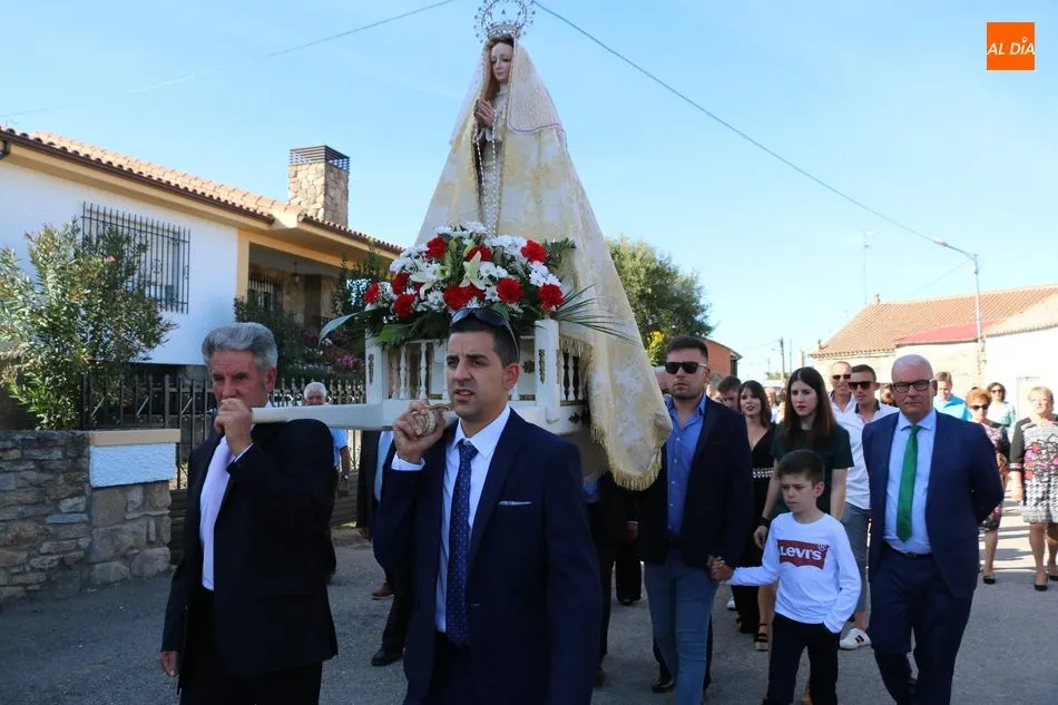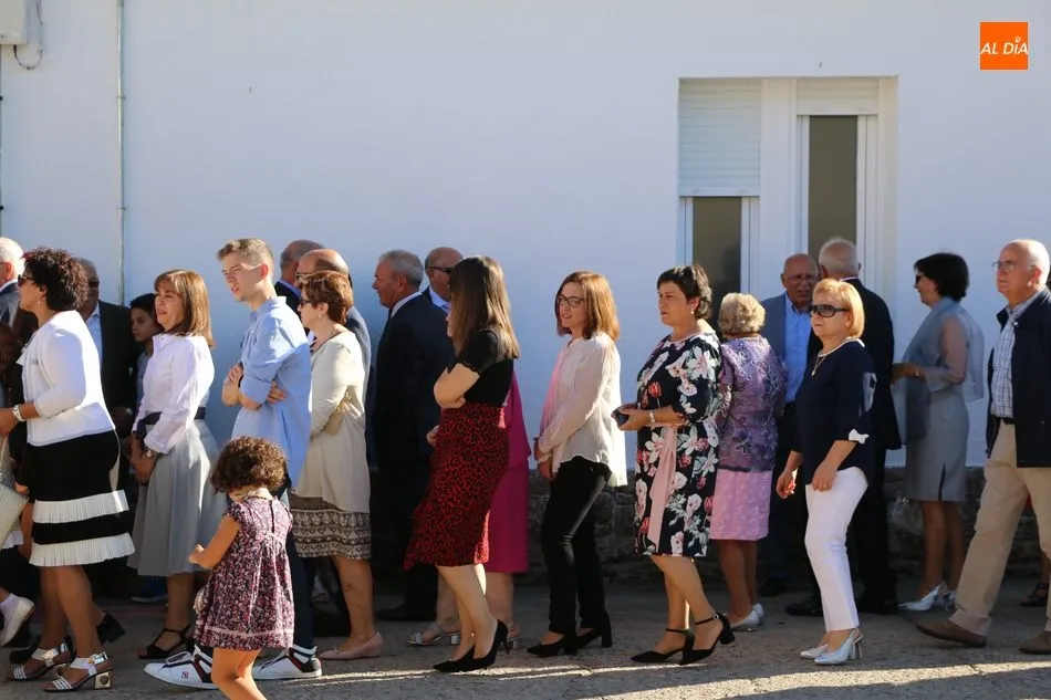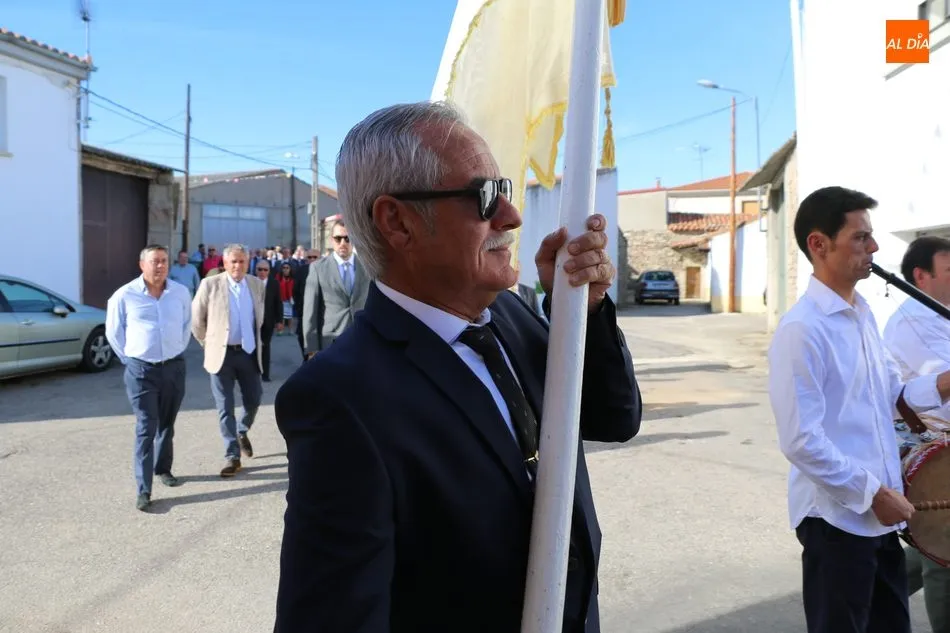 Bajo los sones de la gaita y el tamboril de Ramón Guarido, los vecinos de Valderrodrigo acompañaban a su Madrina, Victoria Vicente Santos, en los actos en honor a la Virgen del Rosario, procesión con rosario que estuvo amenizado por los bailes del grupo de folclore Surco.