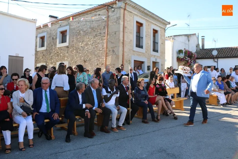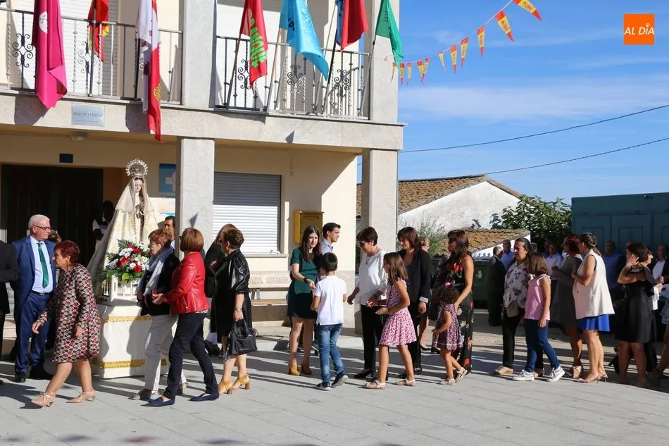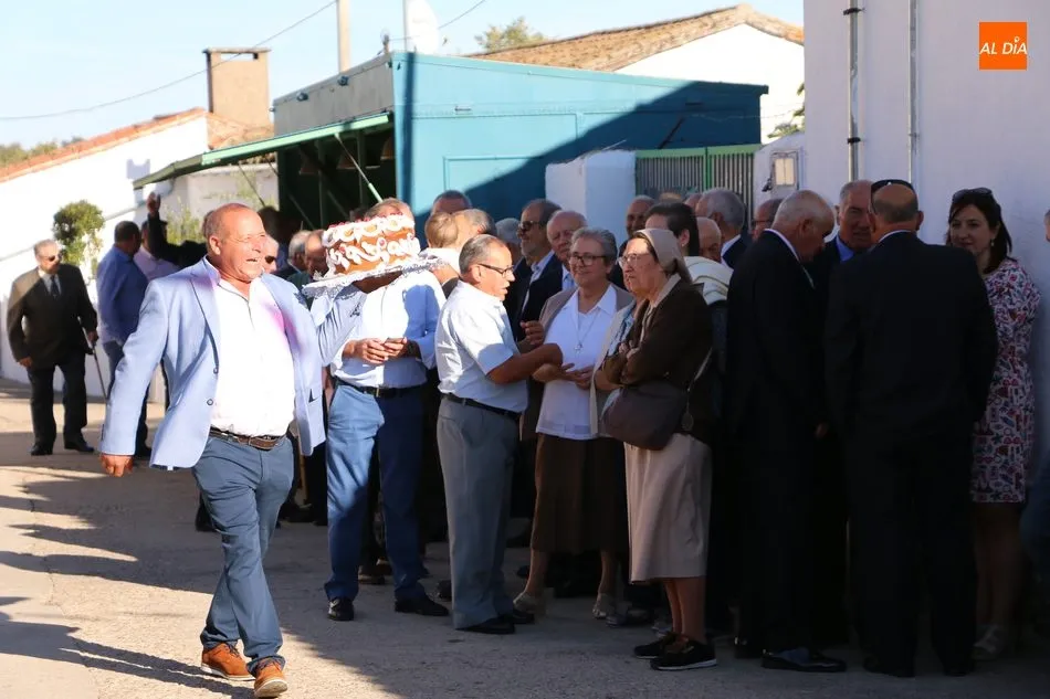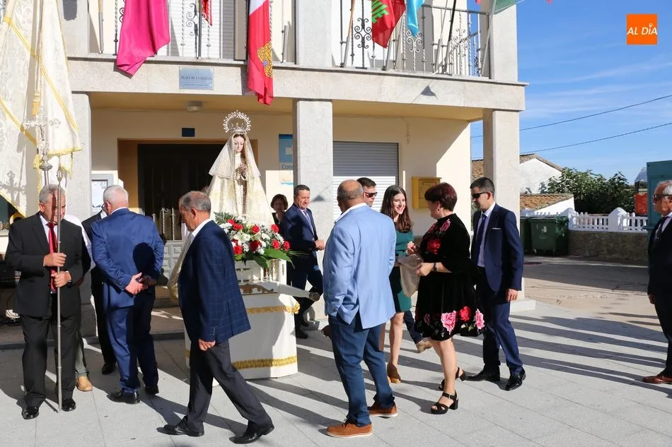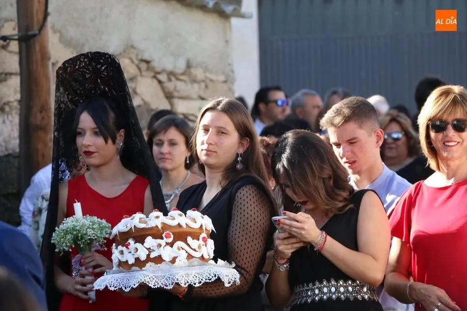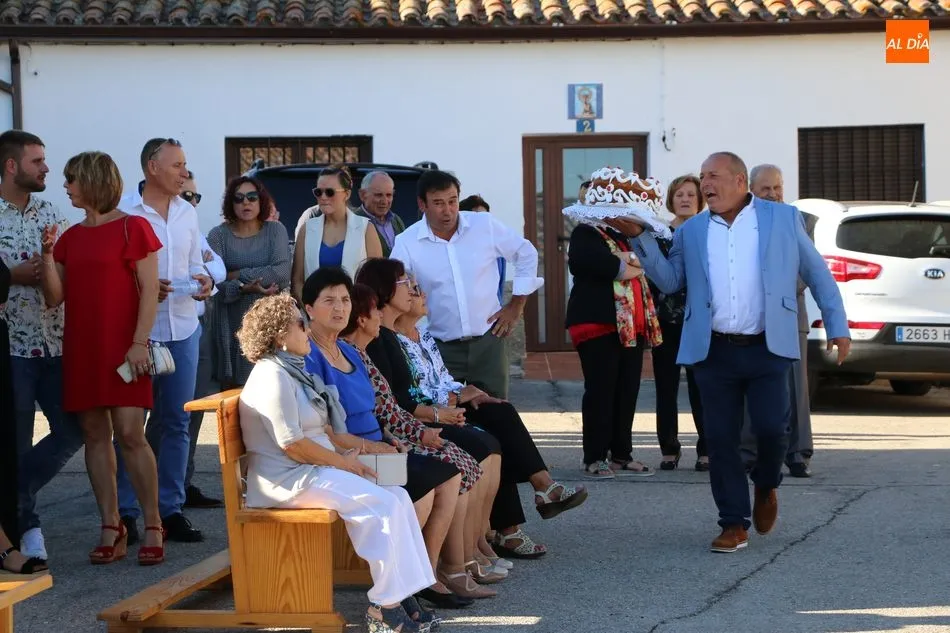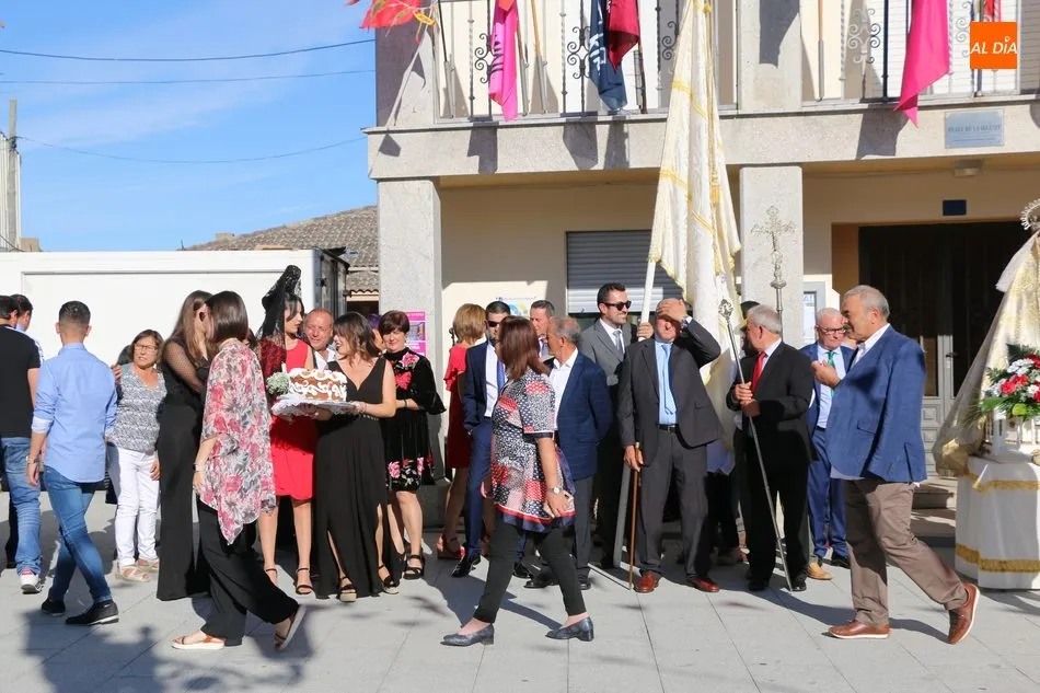 A la llegada a la plaza tuvo lugar el ofertorio, para continuar con la subasta de la rosca, que alcanzó los 70 euros. Con la Virgen ya en el interior de la iglesia, el grupo de folclore Surco ofrecería un excelente repaso a los bailes charros.