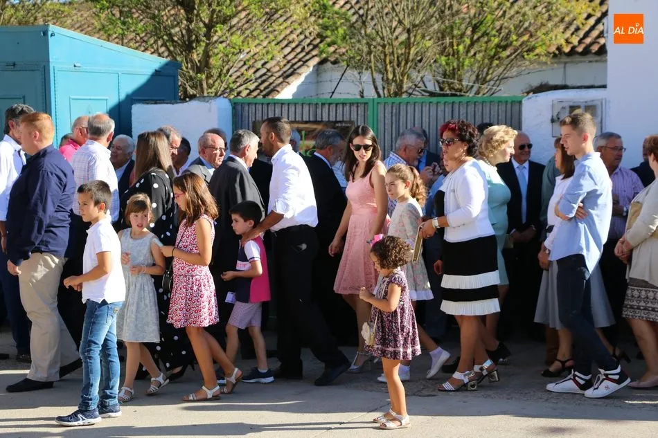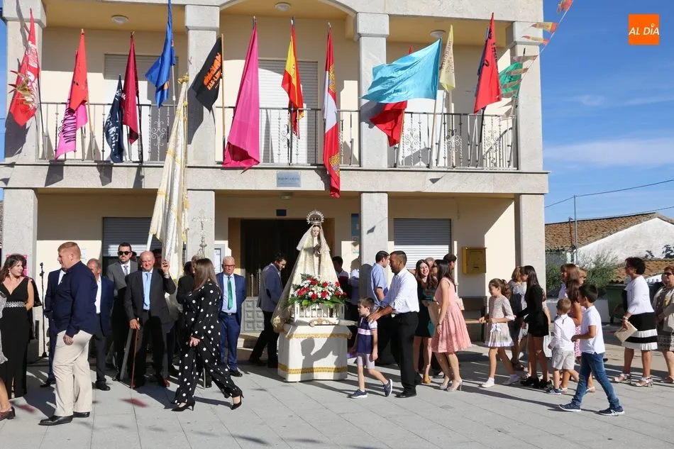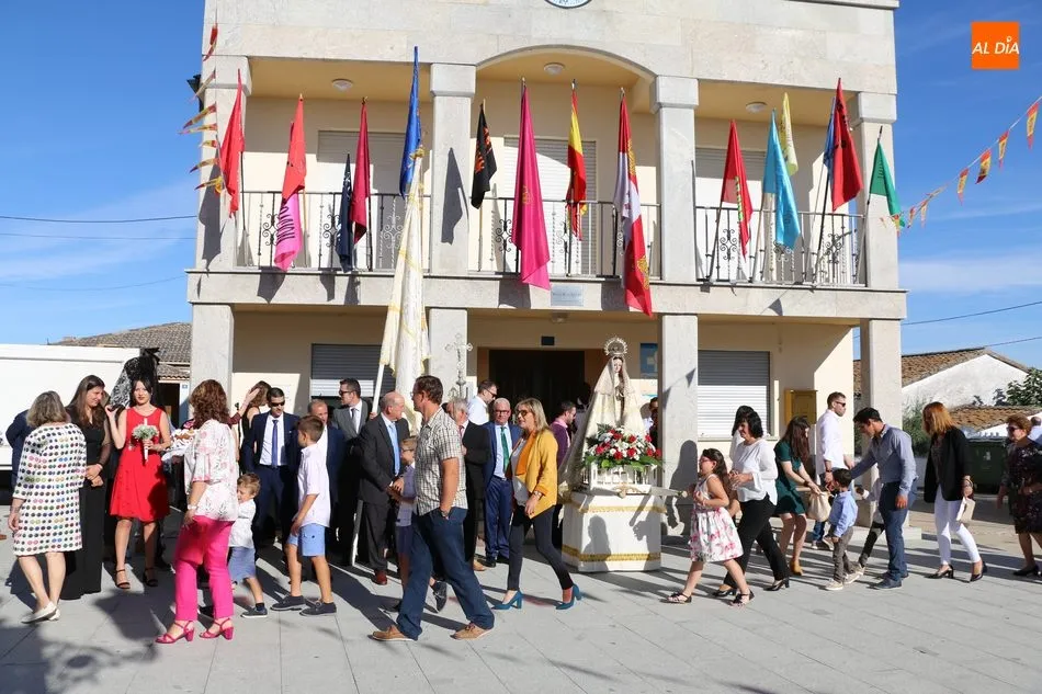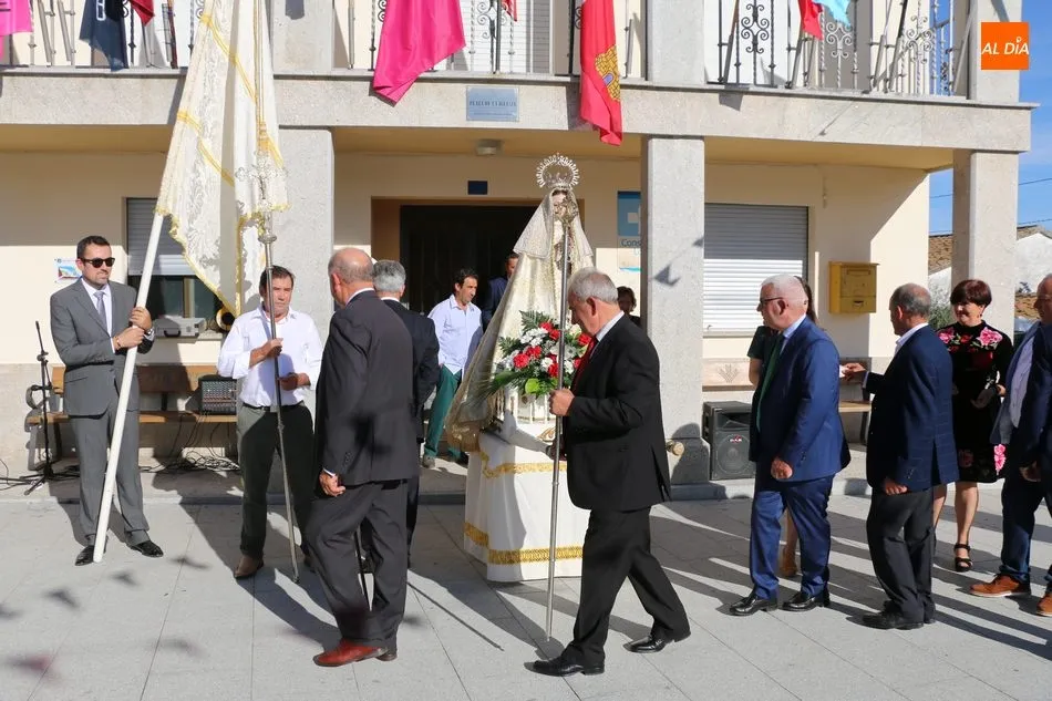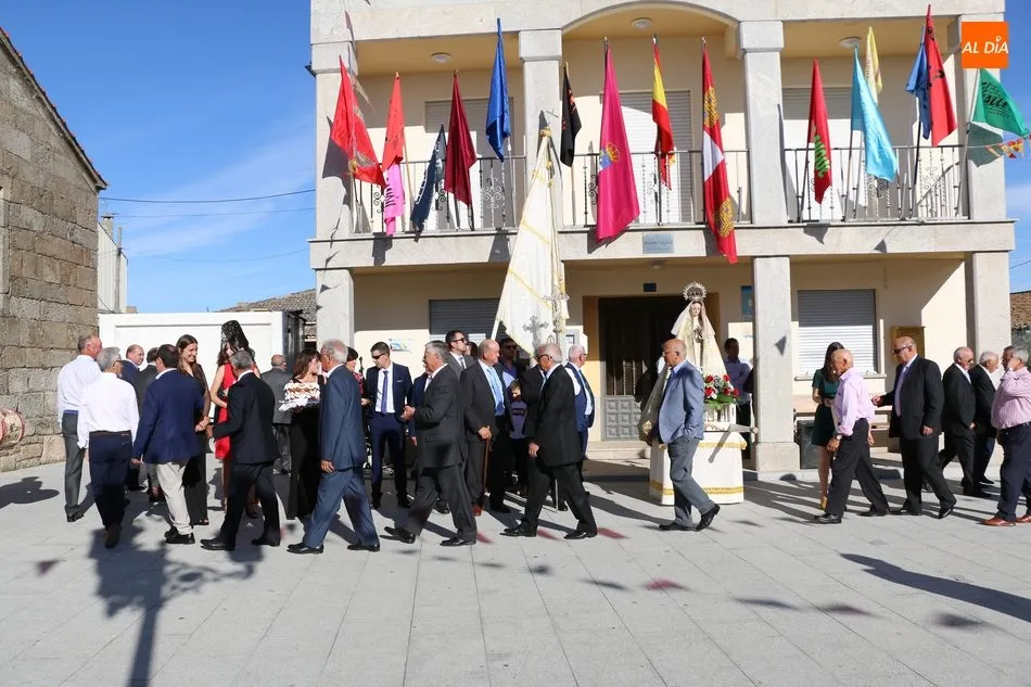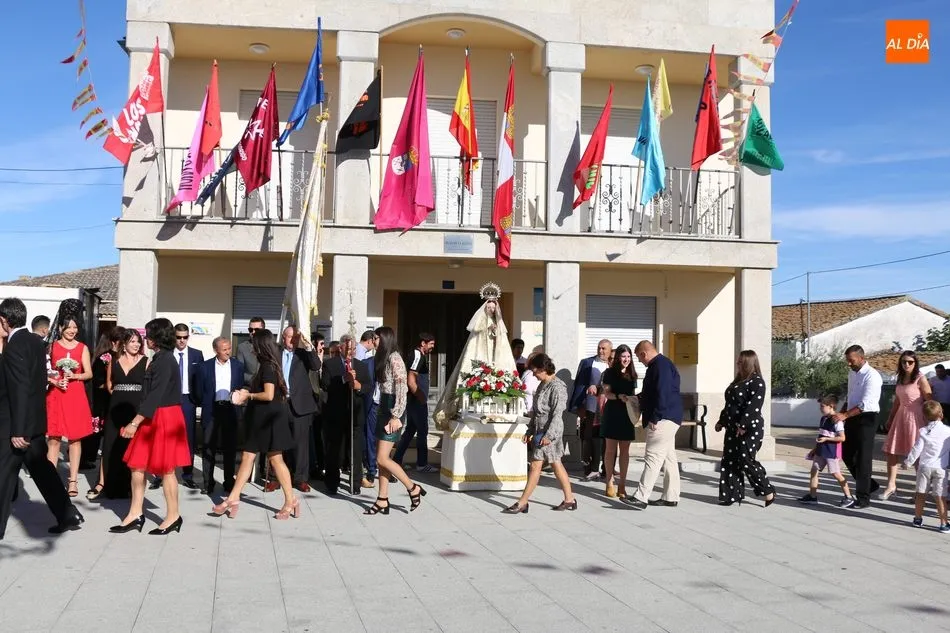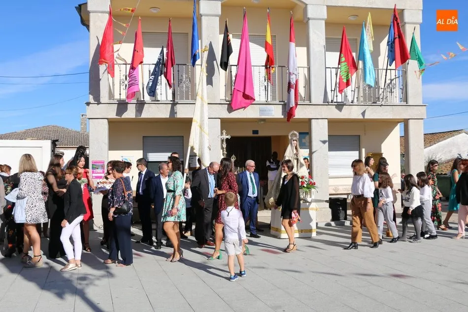 A la llegada a la plaza tuvo lugar el ofertorio, para continuar con la subasta de la rosca, que alcanzó los 70 euros. Con la Virgen ya en el interior de la iglesia, el grupo de folclore Surco ofrecería un excelente repaso a los bailes charros.