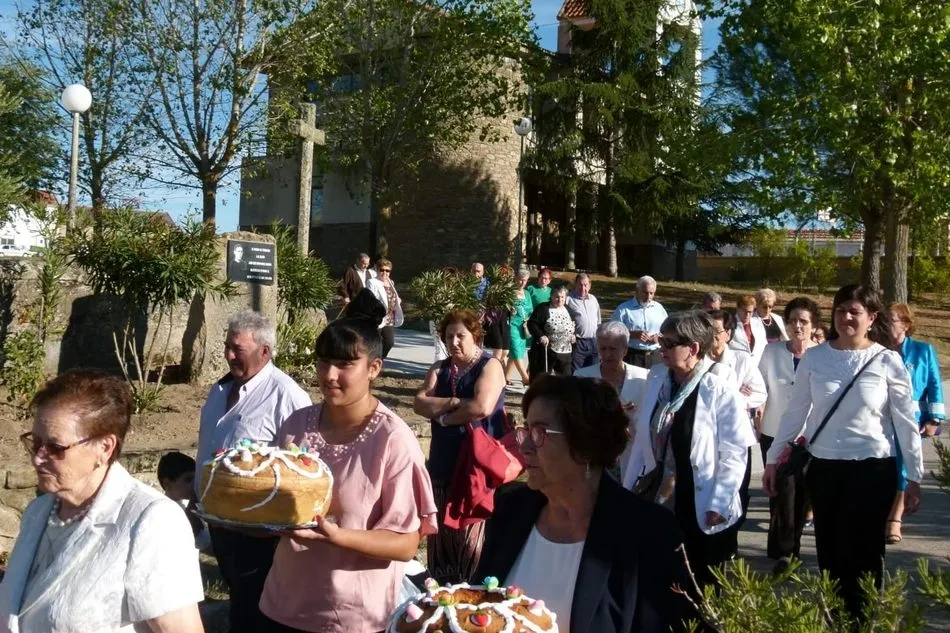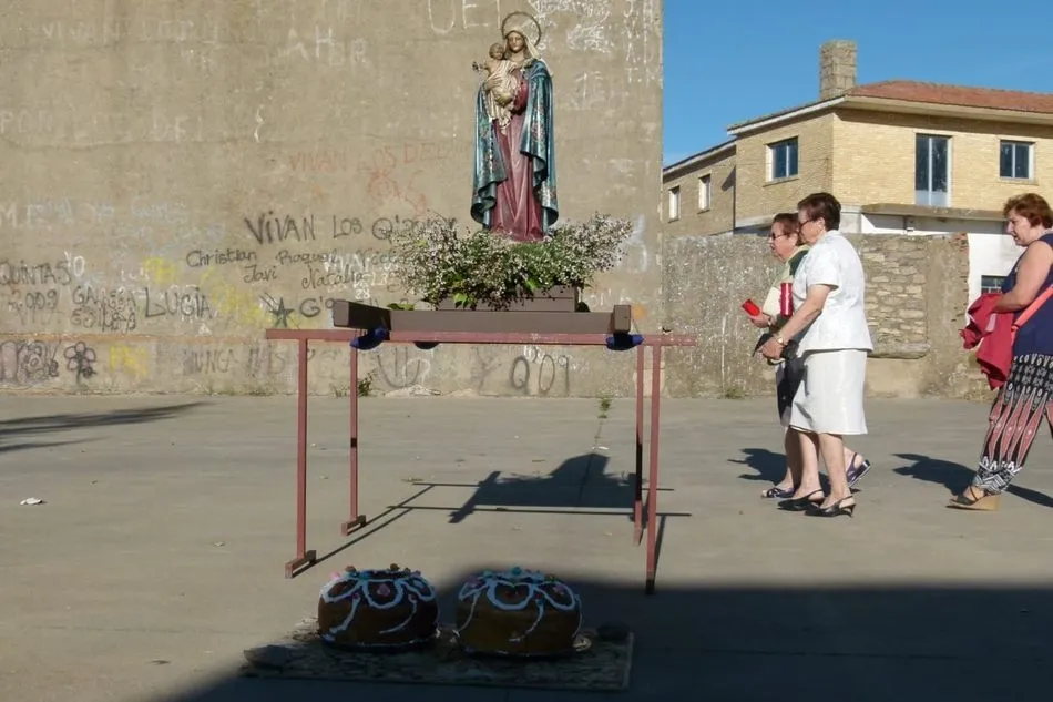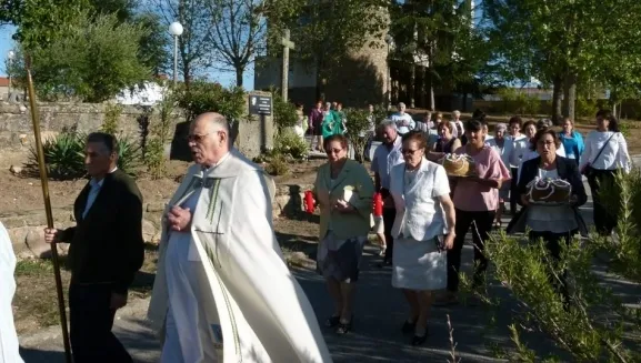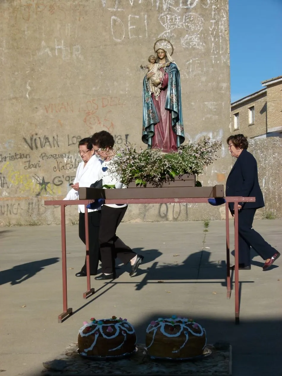 Tras el rezo del rosario, la virgen fue sacada en procesión por las calles circundantes a la iglesia para llegar hasta el frontón y celebrar el ofertorio, además de la tradicional subasta de roscas, en esta ocasión dos estupendos bollos.