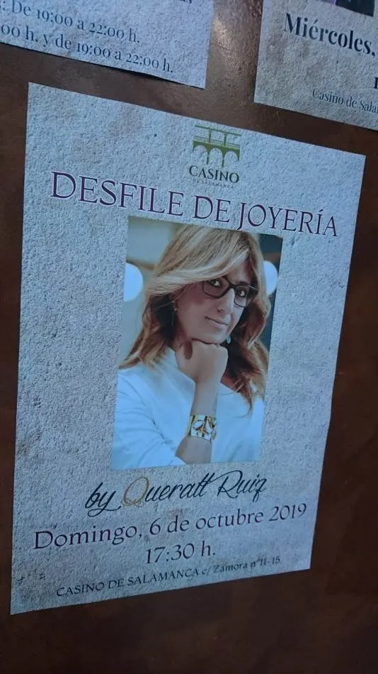 El Casino de Salamanca acogía este domingo un original desfile organizado por la joyería de Queralt Ruiz para dar a conocer los diseños más novedosos de pendientes, pulseras, collares y otros complementos. Así, destacaban las joyas de orfebrería charra y otras con materiales como oro amarillo, blanco y rosa.