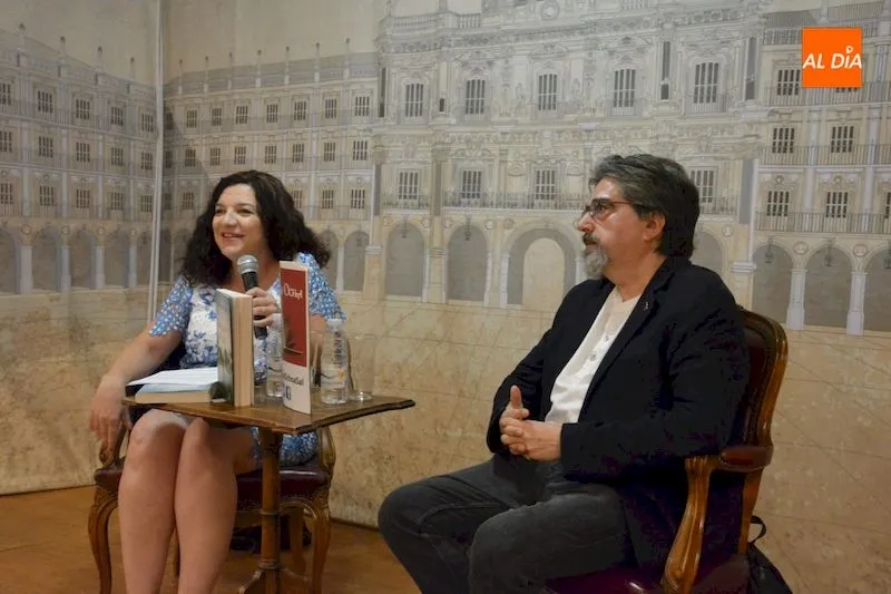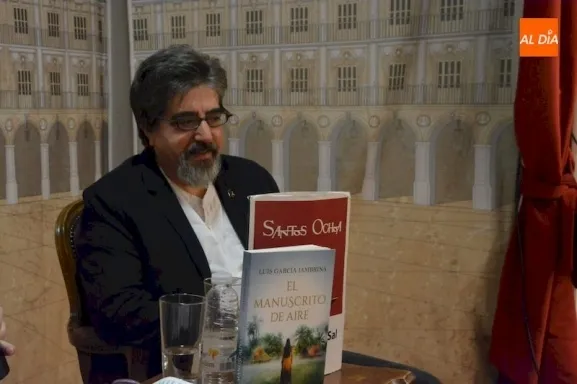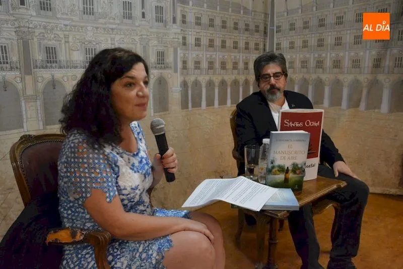 Luis García Jambrina presentó esta tarde en la Librería Santos Ochoa de Salamanca ?El manuscrito del aire?, su nueva publicación. Junto al autor estuvo Francisca Noguerol, profesora titular de Literatura Hispanoamericana.