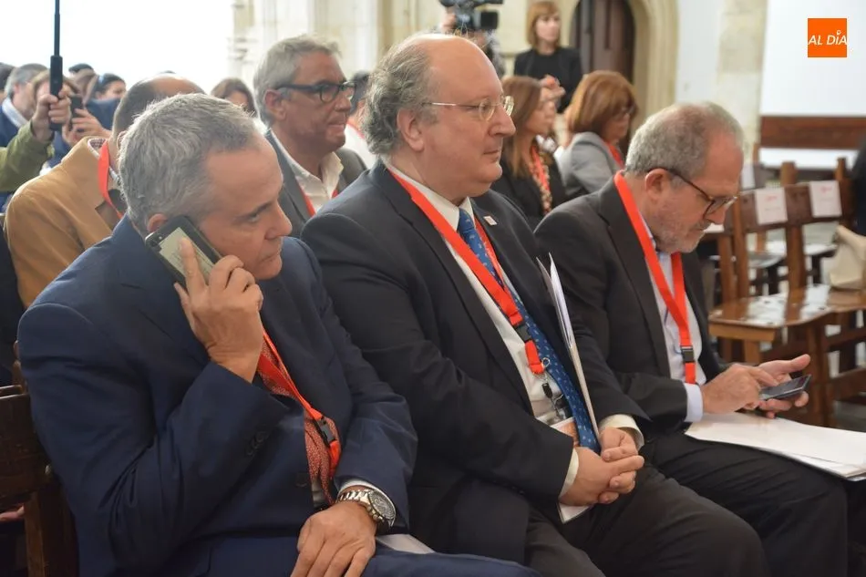 El rector de la Universidad de Salamanca, Ricardo Rivero, y el director general Corporativo de RTVE, Federico Montero Hita, han inaugurado en el Colegio del Arzobispo Fonseca la I Jornada de Innovación Tecnológica y Emprendimiento en el Sector Media, con la que se fortalece la estrecha cooperación que mantiene la Universidad de Salamanca con el ente público audiovisual.