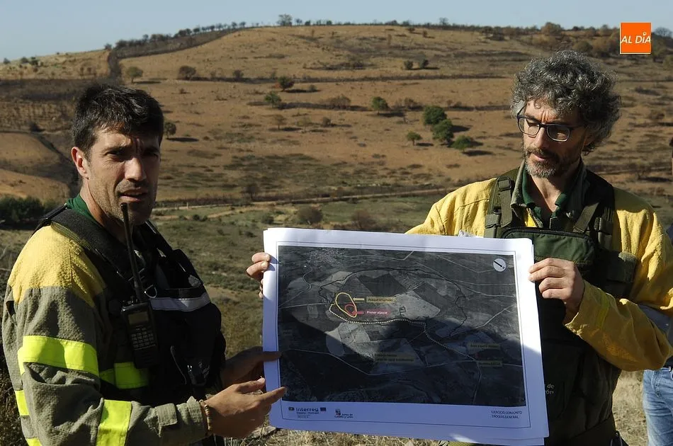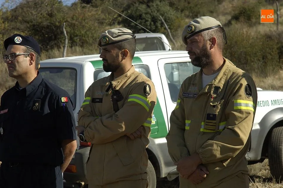 Este macrosimulacro de incendio (desarrollado en ese lugar por la cercanía de la base de El Maíllo) ha formado parte del proyecto europeo de cooperación transfronteriza denominado Asistencia Recíproca Interregional en emergencias y riesgos transfronterizos (ARIEM+), que tiene como objetivo ?mejorar la coordinación y hermanar los países miembros de la Unión Europea que hacen frontera?, según explicó antes de empezar el simulacro Teresa Mompín, jefa de Área de Extinción de Incendios Forestales de la Junta de Castilla y León.