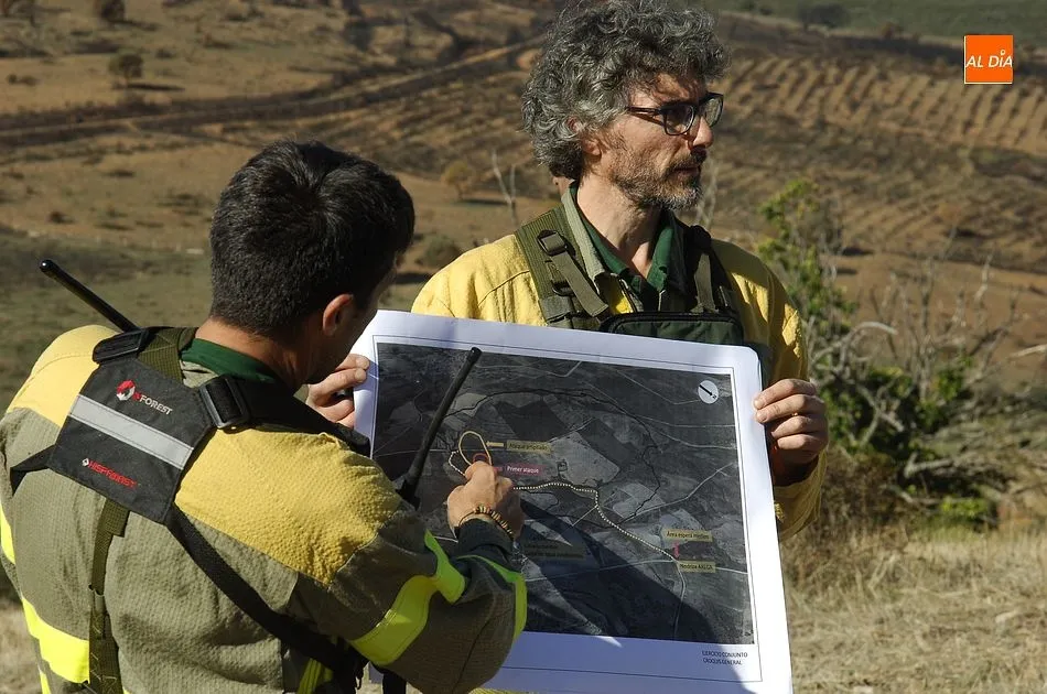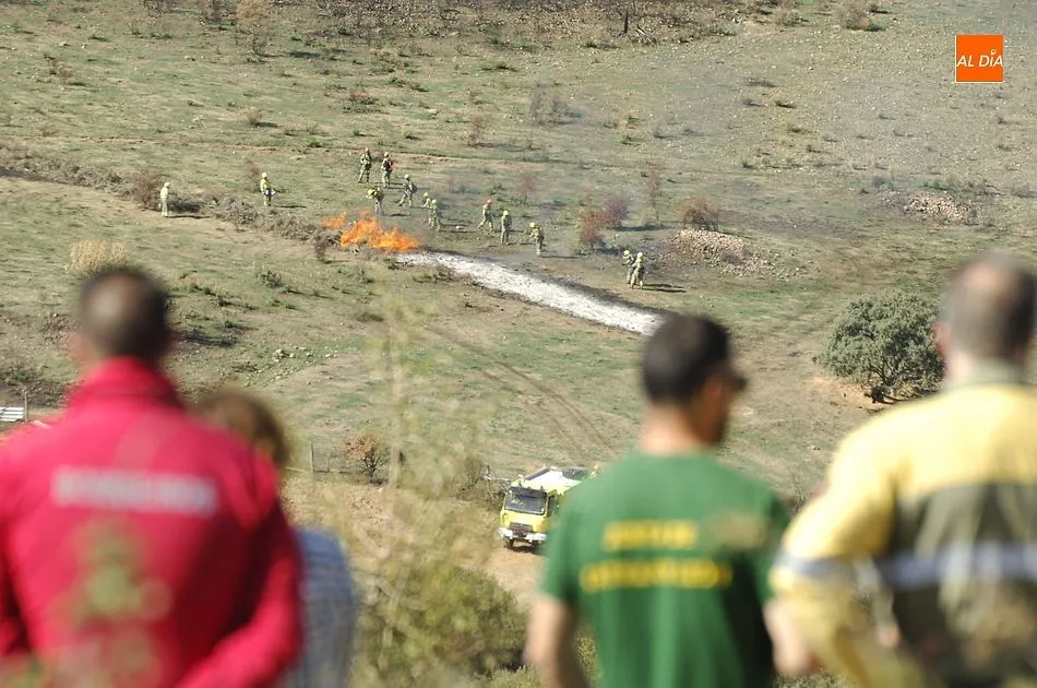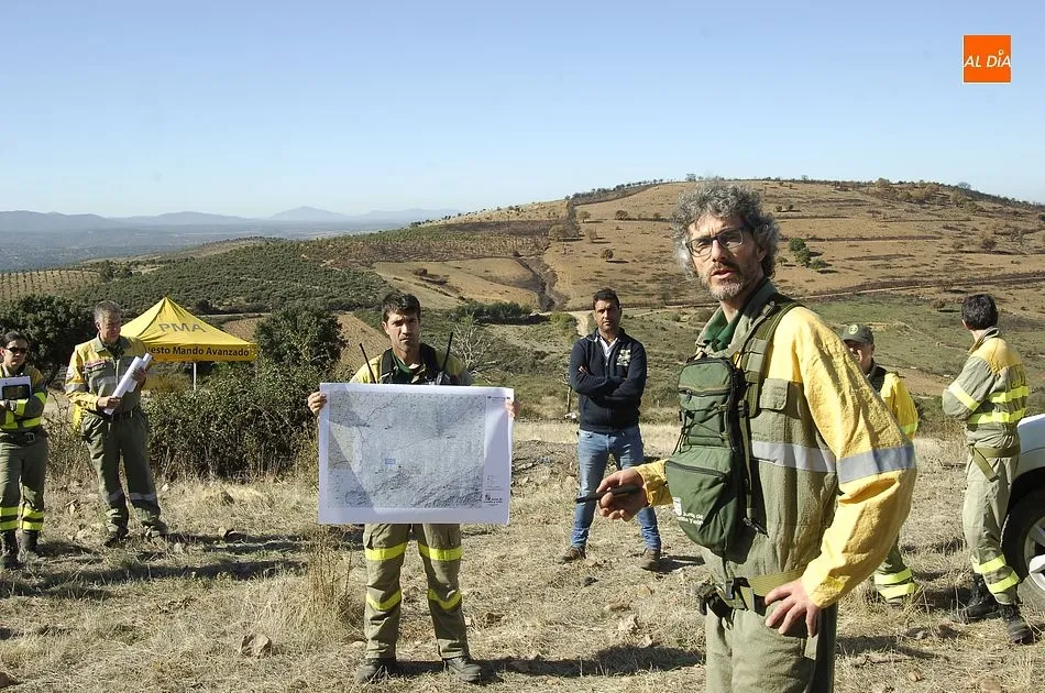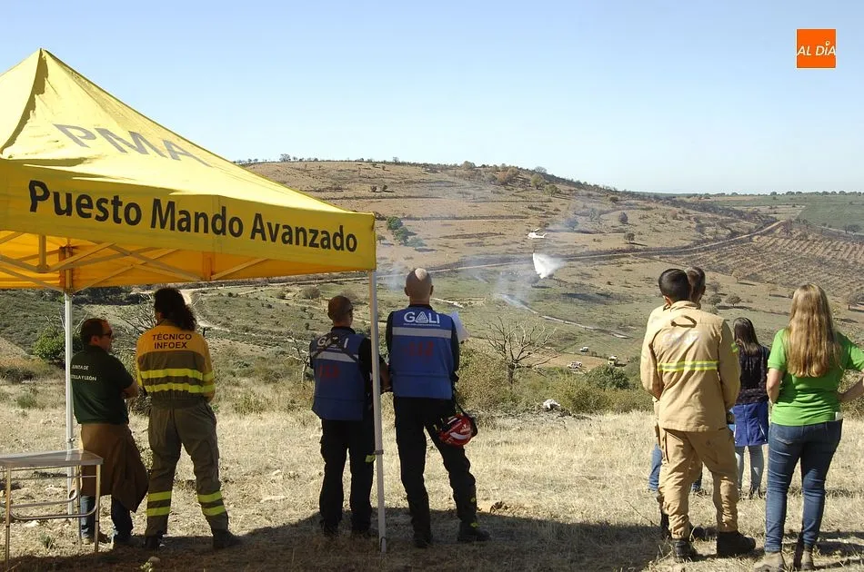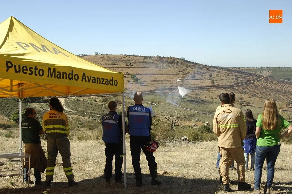 El ejercicio contó asimismo con un Puesto de Mando Avanzado, y se recreó un área de espera y recepción de medios (desde la que se van distribuyendo los medios que llegan a un incendio). Según se explicó, se recreó un incendio que en un momento dado requiere de un ataque ampliado al aumentar su gravedad. En una primera fase, ejerció como jefe de extinción un agente medioambiental, al que en la 2ª fase, cuando se incrementó la gravedad, le relevó un ingeniero del Servicio Territorial de Salamanca.