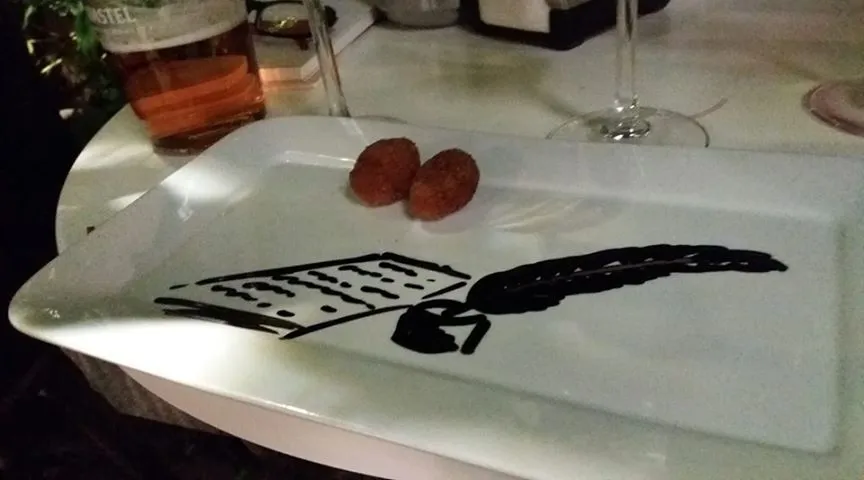 La faena se remata en la hermosa terraza del Restaurante Valencia en esta cálida noche de octubre. El mismo patio en el que escribió Graham Green ?Monseñor Quijote?, como nos recuerda José Luis Valencia, el dueño de este local emblemático que, tras saludar a Gustavo Martín Garzo, le pinta en el plato la pluma y la página de los escritores.