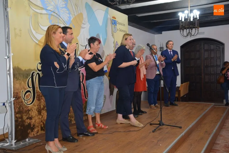 El presidente de la Diputación de Salamanca, Javier Iglesias, y la consejera de Familia e Igualdad de Oportunidades de la Junta, Isabel Blanco, encabezaron este acto con el que se quiere "reconocer el papel y el impulso transformador que supuso para el entorno rural de la provincia las asociaciones de mujeres, surgidas especialmente y con mayor dinamismo a partir de la década de los ochenta".