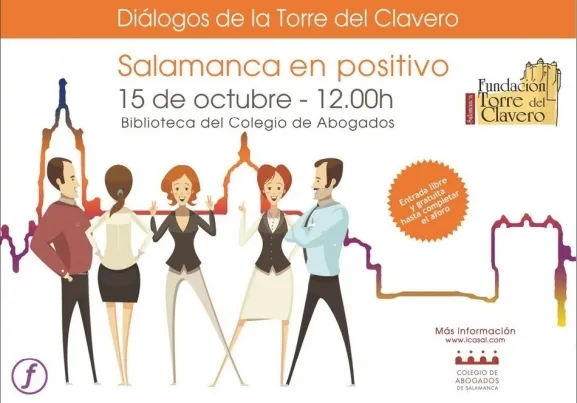 La biblioteca del Colegio de Abogados acogerá el próximo martes, 15 de octubre, la jornada ?Diálogos de la Torre del Clavero. Salamanca en positivo?. La actividad dará comienzo las 12.00 horas, será abierta al público y contará con una amplia mesa redonda en la que participarán ponentes muy relevantes de diferentes sectores de actividad, de la cultura, el deporte, la empresa, la ciencia, la tecnología, la formación, la ganadería, etc.