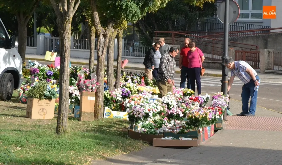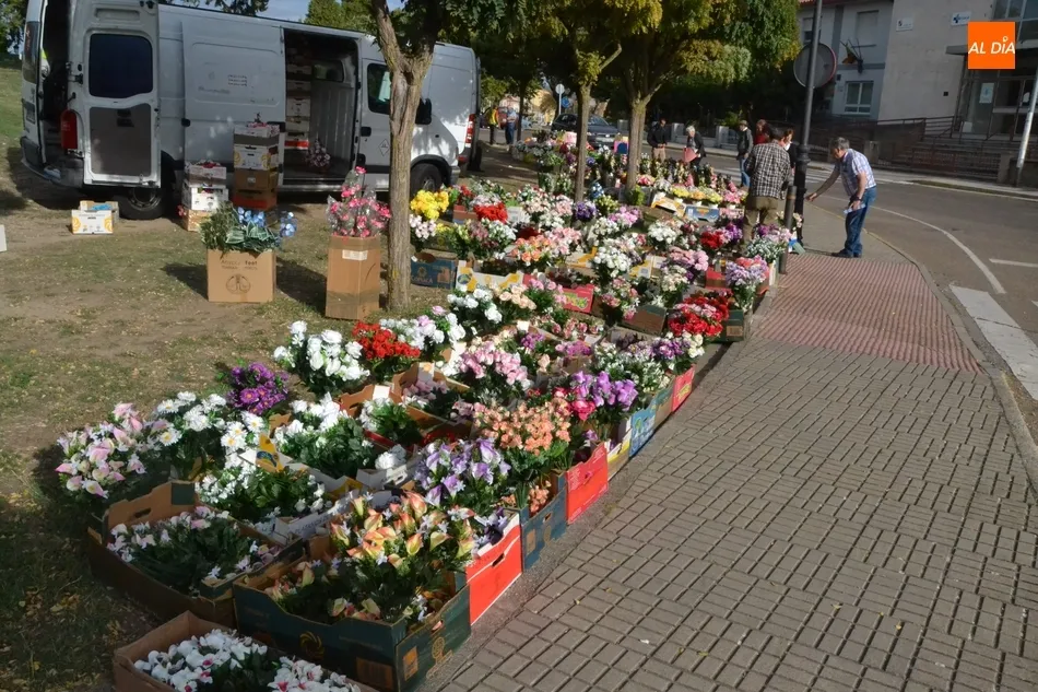 Como es habitual todos los años en las semanas previas a la celebración del Día de Todos los Santos, el mercadillo contó entre los puestos instalados en la mañana del sábado con varios dedicados a la venta de flores, destinadas a adornar los camposantos.